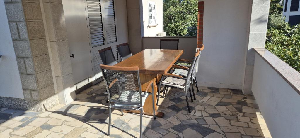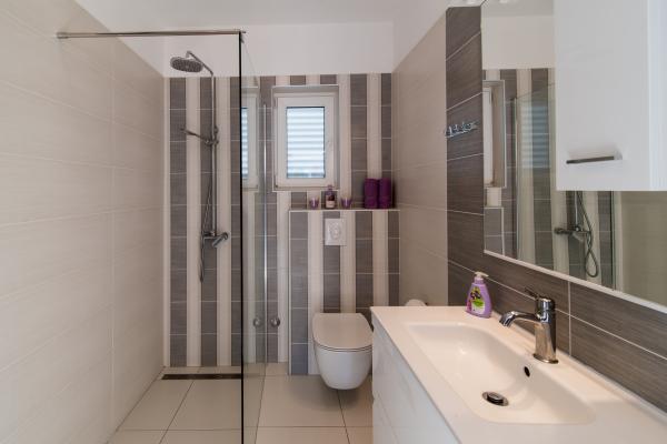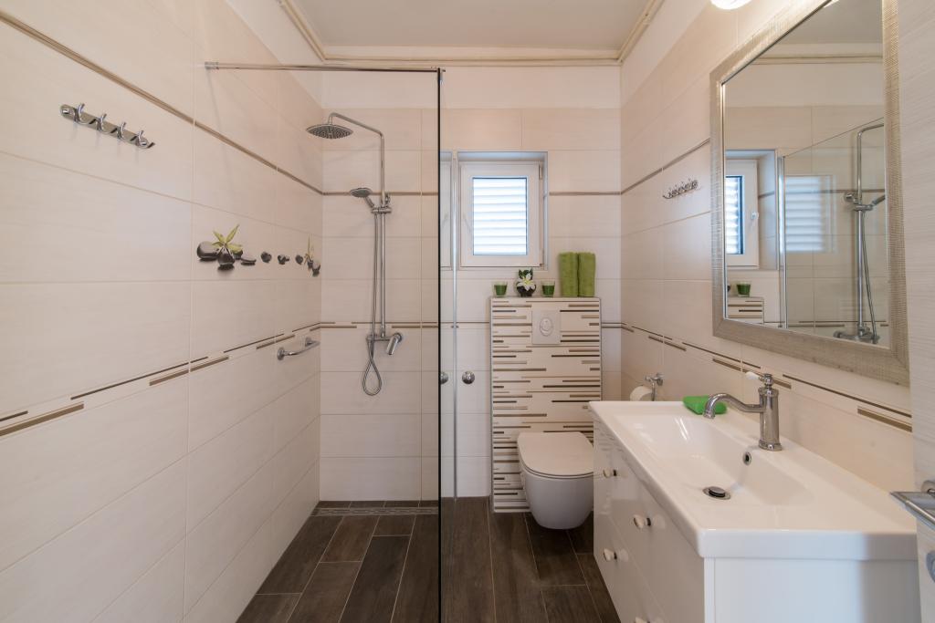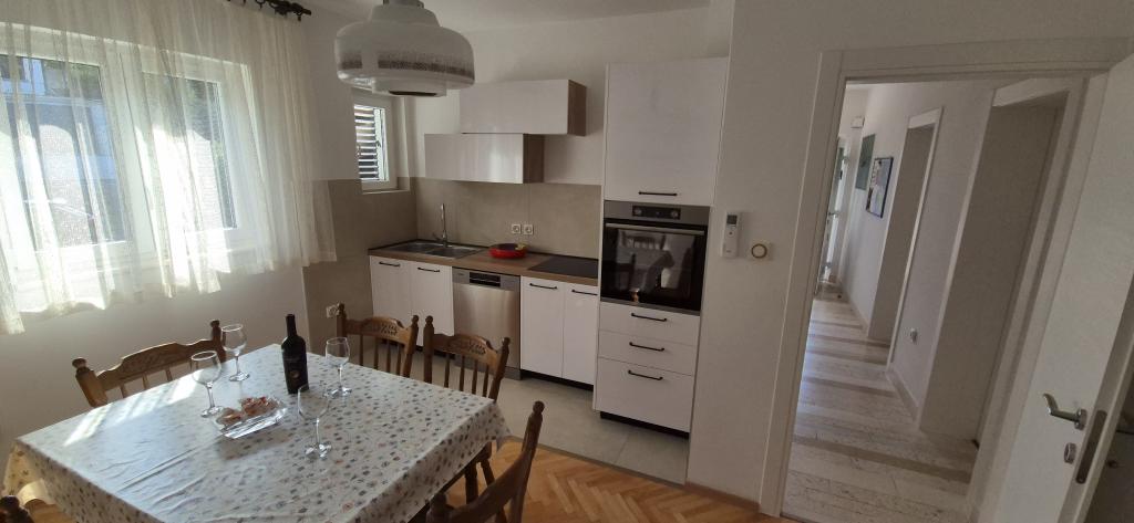 Naša kuća ima 2 komforna apartmana, Marija 1 i Marija 2. Apartmani su smješteni svaki na svojoj etaži, kompletno odvojeni jedan od drugog, sa odvojenim parkirnim mjestima, terasama i svaki sa vlastitim mjestom za roštilj tako da naši gosti imaju osjećaj boravka u kući, ne u apartmanu. Apartman Marija 1 je stariji apartman i uređen u tradicionalnom ali vrlo funkcionalnom stilu. Našim gostima na raspolaganju je 90 metara kvadratnih stambenog prostora uključujući balkon i terasu i možemo komotno smjestiti šest osoba. Posebno smo ponosni na mjesto za roštilj koji gosti ovog apartmana koriste. Apartmanu pripadaju dva parkirna mjesta u dvorištu- Apartman Marija 2 je nešto noviji sa velikom terasom, roštiljem na terasi i lijepim pogledom na more. Našim gostima na raspolaganju je oko 95 metara kvadratnih stambenog prostora uključujući balkon i terasu, možemo komforno smjestiti 6 osoba. Apartman ima svoje vlastito parkirno mjesto odmah uz terasu apartmana. Dobrodošli u Vilu Marija !