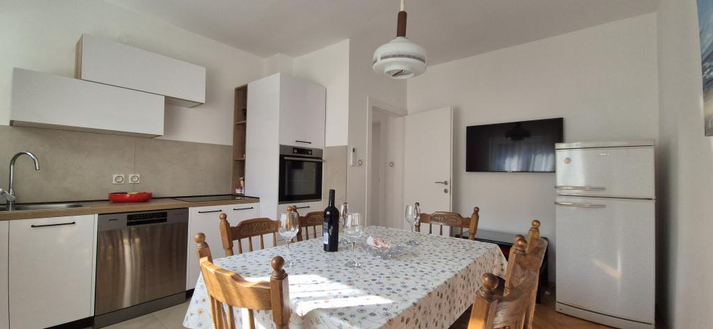 Turistička pristojba je uključena u cijenu.Izvrsno mjesto za opuštanje, stan je čist i ima sve što je potrebno za funkcioniranje, vlasnik Darko je ljubazan i ljubazan, brine o svojim gostima, čak i ako postoji jezična barijera. Idete nizbrdo do plaže, ali nažalost povratak je uzbrdo. Šteta što parking pored stana nema krov jer je auto kao tava, a bilo bi lijepo i osiguranje na stepenicama (kapija) da djeca ili životinje mogu ne spuštati se (ili pasti) bez nadzora odraslih (ali to je detalj). Nema dodatnih naknada za kućne ljubimce, što apartman čini još privlačnijim. Sve u svemu, toplo preporučujem ovaj apartman.