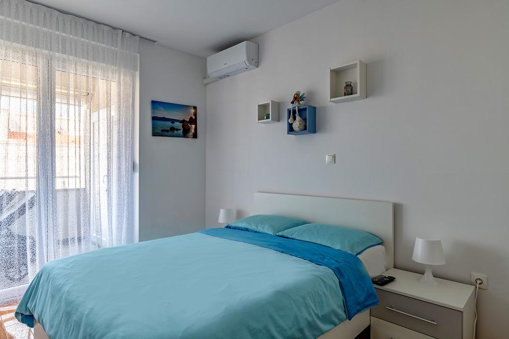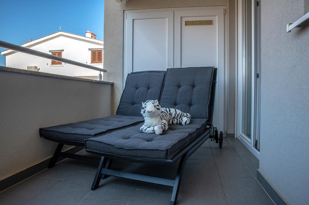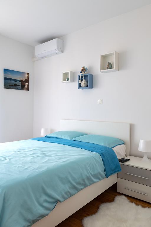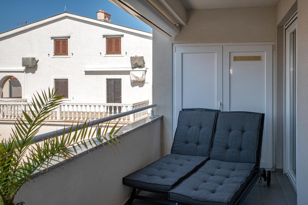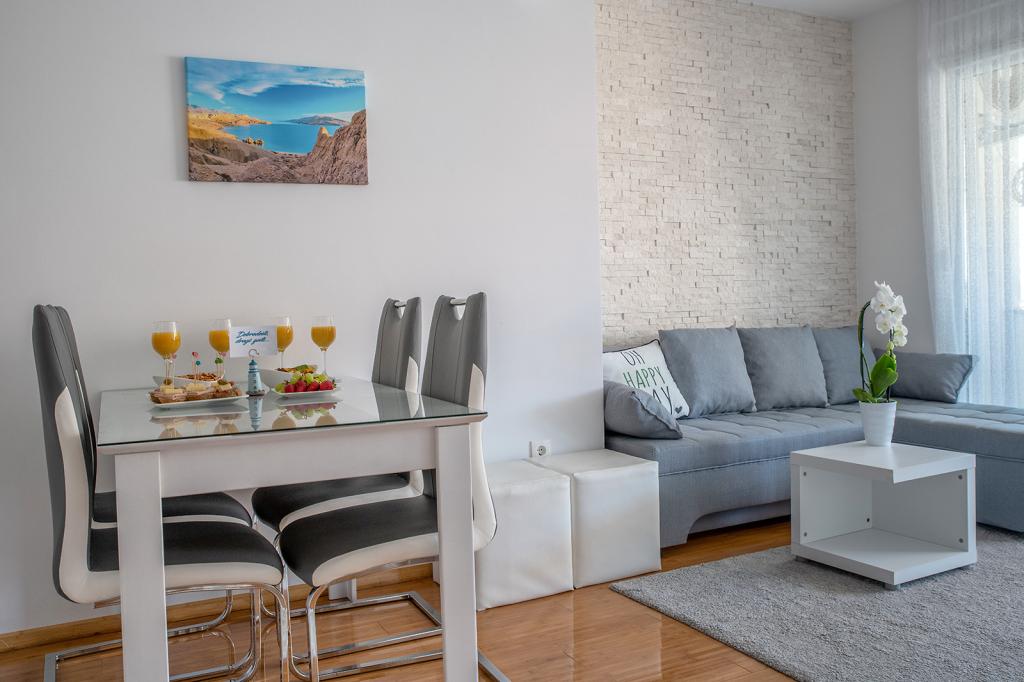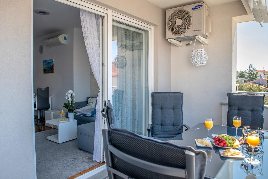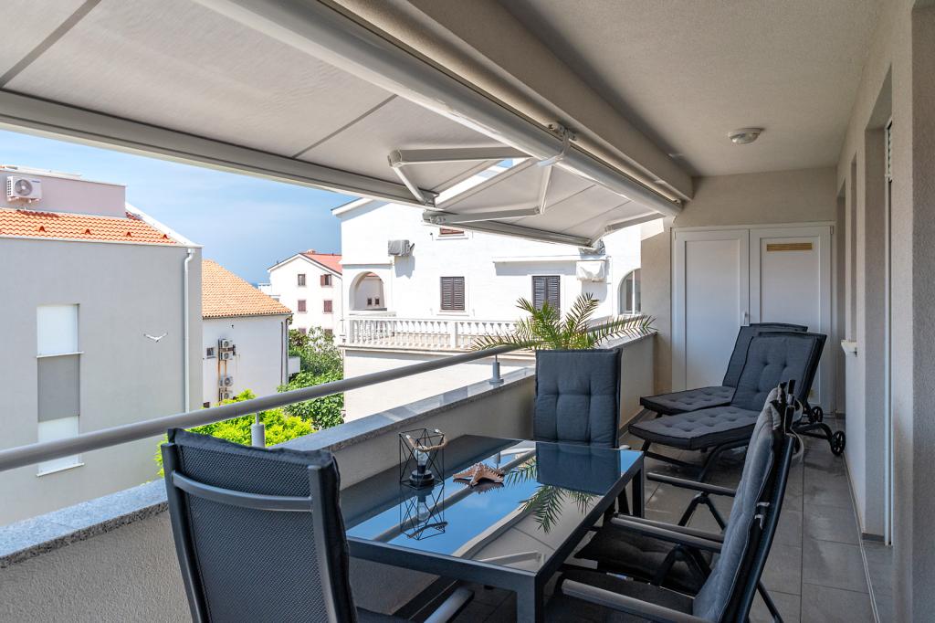 Nalazimo se na odličnoj lokaciji u Novalji, u Primorskoj ulici, 150m do pješčane plaže sa kristalno čistim morem, 15 minuta lagane šetnje uz more uz šetnicu do centra Novalje/rive sa brojnim barovima i igralištima za djecu. 150m do pješčane plaže Ploče, 8 minuta hoda do plaže Babe. Obje plaže su pogodne za djecu. Ostale prekrasne plaže na otoku udaljene su samo nekoliko minuta vožnje automobilom. Stan sadrži 2 spavaće sobe, kuhinju s blagovaonicom i dnevnim boravkom, kupaonicu, ulazni hol, veliku terasu s pogledom na more i parkirno mjesto. Sve tri sobe imaju izlaz na terasu. Kompletno opremljen za ugodan boravak: 2 klime, wi-fi, steklokeramička ploča za kuhanje, pećnica, hladnjak sa zamrzivačem, mikrovalna, perilica suđa, perilica rublja, 2 TV-a, posteljina, ručnici, kuhinjske krpe, kuhalo za vodu, električni roštilj, toster kruh, kosa sušilica, 2 udobne ležaljke na terasi, suncobran za plažu... Apartman nije pogodan za kućne ljubimce. Dobrodošli!