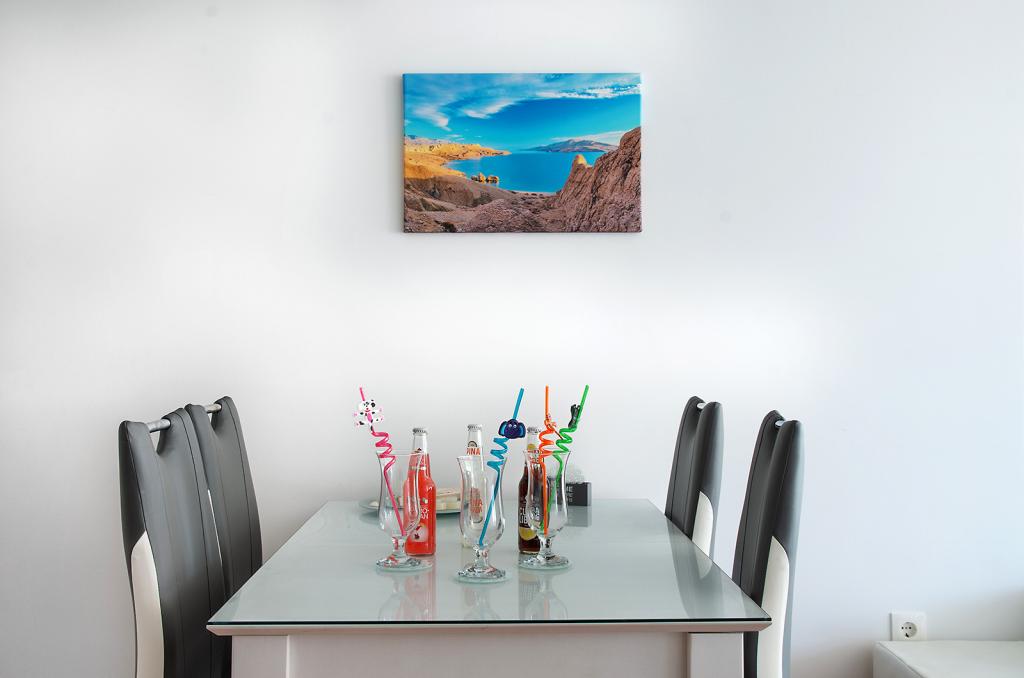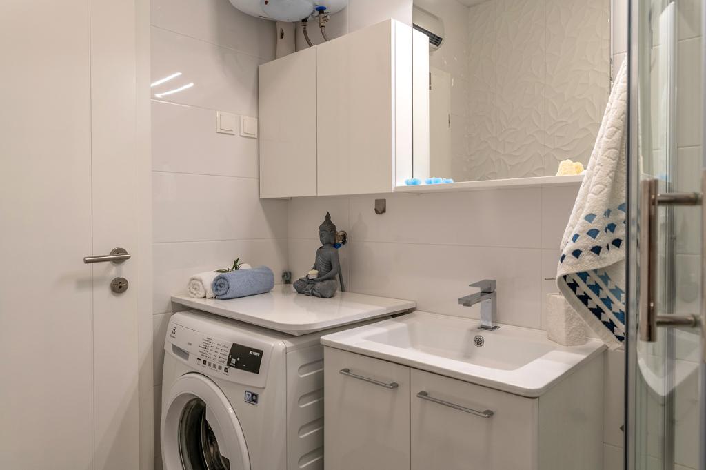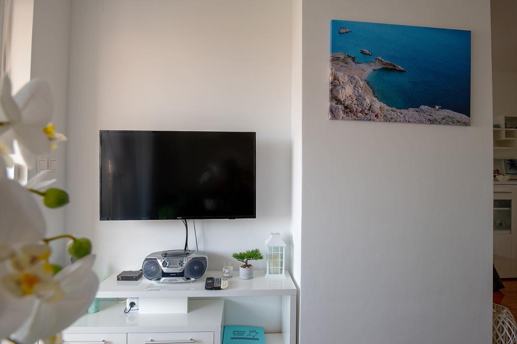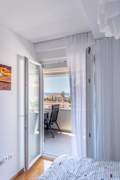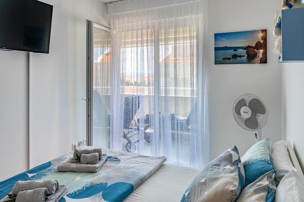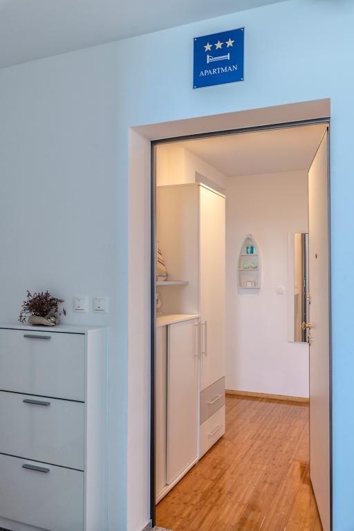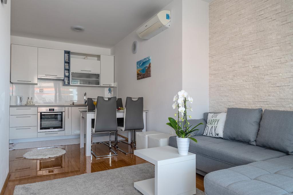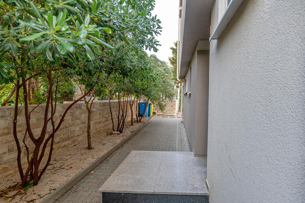 Nalazimo se na odličnoj lokaciji u Novalji, u Primorskoj ulici, 150m do pješčane plaže sa kristalno čistim morem, 15 minuta lagane šetnje uz more uz šetnicu do centra Novalje/rive sa brojnim barovima i igralištima za djecu. 150m do pješčane plaže Ploče, 8 minuta hoda do plaže Babe. Obje plaže su pogodne za djecu. Ostale prekrasne plaže na otoku udaljene su samo nekoliko minuta vožnje automobilom. Stan sadrži 2 spavaće sobe, kuhinju s blagovaonicom i dnevnim boravkom, kupaonicu, ulazni hol, veliku terasu s pogledom na more i parkirno mjesto. Sve tri sobe imaju izlaz na terasu. Kompletno opremljen za ugodan boravak: 2 klime, wi-fi, steklokeramička ploča za kuhanje, pećnica, hladnjak sa zamrzivačem, mikrovalna, perilica suđa, perilica rublja, 2 TV-a, posteljina, ručnici, kuhinjske krpe, kuhalo za vodu, električni roštilj, toster kruh, kosa sušilica, 2 udobne ležaljke na terasi, suncobran za plažu... Apartman nije pogodan za kućne ljubimce. Dobrodošli!