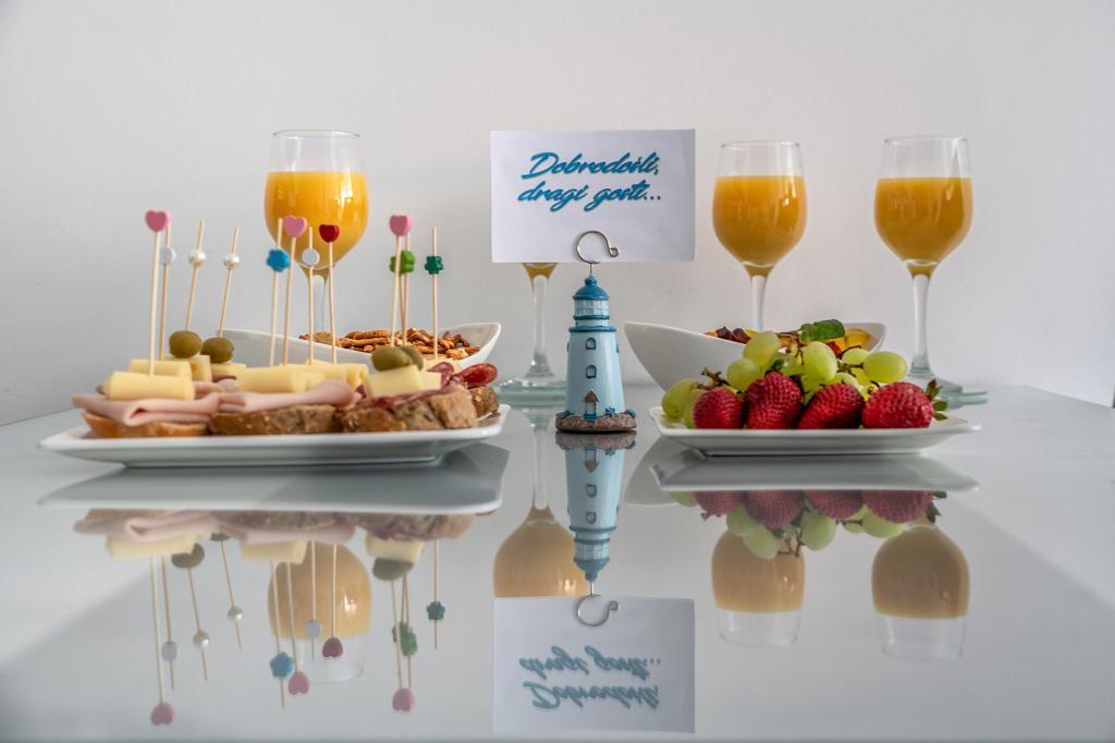 Pročitaj više Smještajne jediniceKućni red: Smještaj je na raspolaganju od 14:00 sati na dan dolaska, do 10:00 sati na dan odlaska. Zabranjeno je uništavanje opreme i namještaja, izazivanje nereda i ometanje drugih gostiju, a osobito se zabranjuje stvaranje buke (glasno slušanje glazbe, emitiranje zvukova bilo koje vrste), koja smeta ostalim gostima u kući i susjedstvu. Zabranjeno je dovoditi dodatne osobe na spavanje u objekt koje nisu gosti objekta. Ovakav prekršaj znači trenutno otkazivanje smještaja u objektu bez povrata uplaćenog novca.
