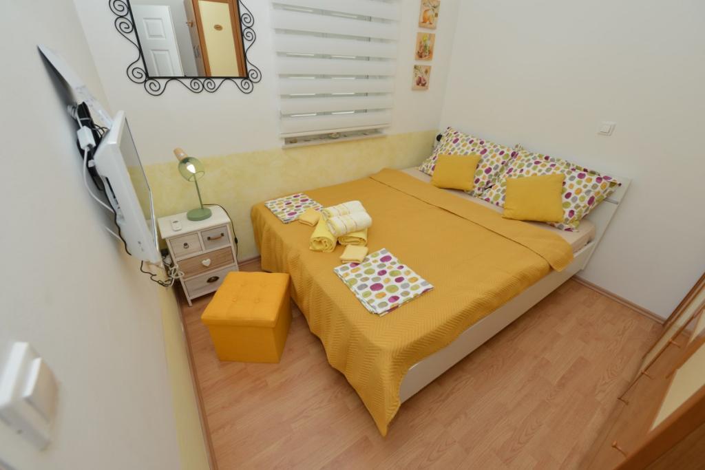 Pročitaj više Smještajne jedinicePrijava u apartmanu vrši se u vremenu od 15:00 -22:00 sati , te odjava u vremenu od 09:00-10:00 sati. Prilikom dolaska gosti su dužni predočiti uz osobnu ispravu i rezervaciju u objektu. Ulaskom u apartman gosti su dužni prema priloženom popisu zadužiti apartman pridržavajući se kućnog reda. Korištenje apartmana na dan odlaska je do 09:00 sati. Plaćanje troška boravka vrši se pri dolasku 70%, akontacija iznosi 30%, otkaz be povratka akontacije. Način naplate Internet bankarstvo IBAN-€.Prilikom plaćanja gostima se izdaje račun kojeg su dužni čuvati do odlaska. Za vrijeme boravka gosti su dužni čuvati inventar apartmana. Apartman pri odlasku u prisutnosti gosta pregledava osoba zadužena za prijam i odjavu.