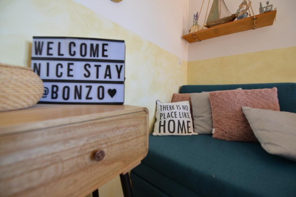 Apartman Bonzo smješten je na području sjevernog Jadrana Hrvatske na otoku Pagu u gradu Novalja. Apartman se nalazi u stambenoj zgradi sa prekrasnim pogledom na more i sam grad Novalja. Jednosobni apartman je za ukupno četiri osobe. Apartman Bonzo odličan je izbor za vaš obiteljski ili individualni odmor. Posebno za istaknuti je blizina mora, udaljen samo 150 metara do prve plaže kao i 500 metara do centra grada Novalja. Novalja je mjesto koje obiluje brojnim restoranima, kafićima, tržnicama, prekrasnim dugim pješčanim plažama i noćnim klubovima. Apartman Bonzo Novalja uvijek nudi najbolje, spreman preporučiti mjesto za užitak u dobroj hrani kao i mjesto dobre zabave.Ako želite bijeg od stvarnosti, mir, privatnost, volite sunce, more i šetnje dugim stazama uz more Apartman Bonzo je pravi odabir za vaš odmor iz snova. Apartman Bonzo nalazi se na području sjevernog Jadrana Hrvatske na otoku Pagu u gradu Novalja na drugom katu stambene zgrade.