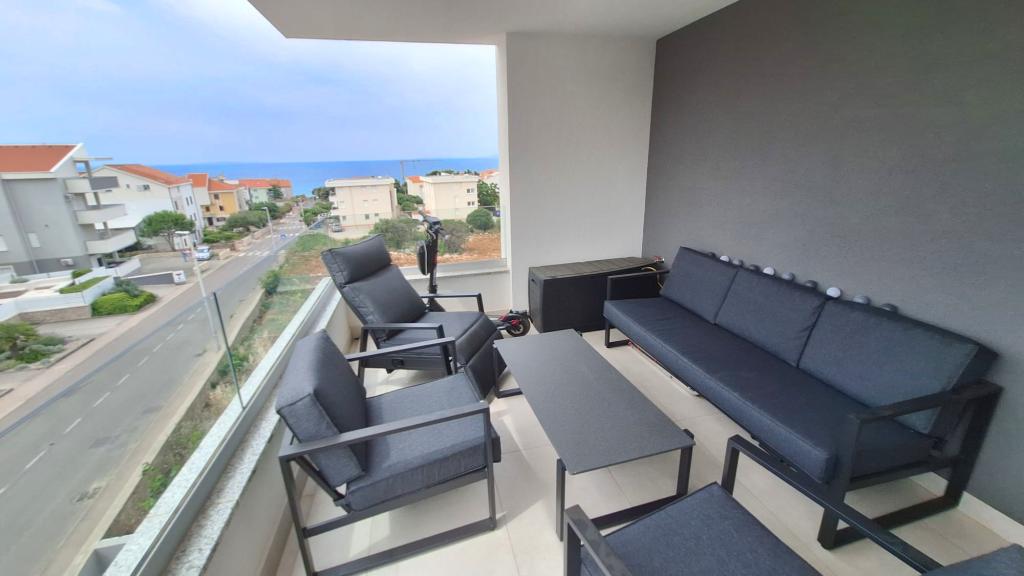 Apartman se nalazi u novogradnji u Novalji i nudi prekrasan pogled na more. U potpunosti je opremljen novim, modernim namještajem koji osigurava udoban i bezbrižan boravak. Stan ima klima uređaj u svakoj prostoriji, a podno grijanje je provučeno kroz cijeli stan. Gostima je na raspolaganju privatni parking te potpuno opremljena kuhinja za pripremu obroka. Za dodatno uživanje tu su SUP daska i električni romobil. Plaža je udaljena svega 350 metara, dok je centar Novalje na 1,5 km. Trgovina se nalazi preko puta ulice, što boravak čini još praktičnijim.