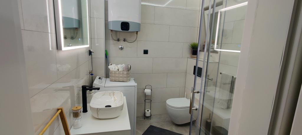 Novo uređeni apartman u Novalji na otoku Pagu. Otok je povezan mostom. Nalazi se na 1. katu stambene zgrade. Apartmanu pripada parkirno mjesto. Apartman je opremljen klima uređajem, besplatnim WiFI, Dolce Gusto mašinom za kavu, kuhalo za vodu, sef.