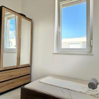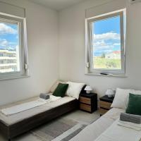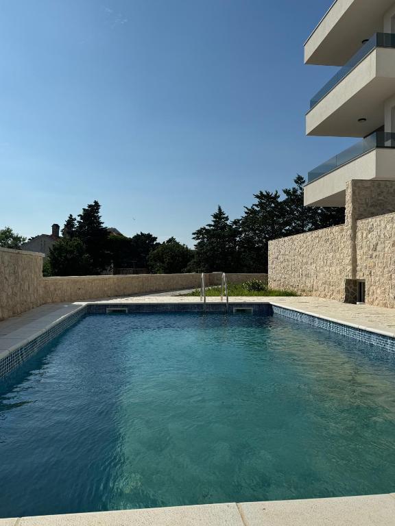 Apartman se nalazi u Novalji na otoku Pagu, manje od 400 metara od glavne plaže i centra grada. Do navedenih odredišta potrebno je cca 4 minute hoda. Apartman nudi besplatni WiFi, besplatno parkirno mjesto uz mogućnost korištenja bazena. Dnevni boravak i svaka soba opremljena je klima uređajem i TV-om. Apartman ima jednu kupaonicu i odvojeni wc te terasu s pogledom. Prostrani apartman ima 2 spavaće sobe, 2 kupaonice, posteljinu, ručnike, TV ravnog ekrana sa streaming uslugama, blagovaonicu, potpuno opremljenu kuhinju i balkon s pogledom na more. Smještaj je zabranjen za pušenje. Apartman je udaljen 4 kilometra od najpoznatije plaže Zrće. Najbliža zračna luka je u Zadru, udaljena 83 km (1 sat i 20 minuta vožnje). Stan je nov iz 2024 godine.