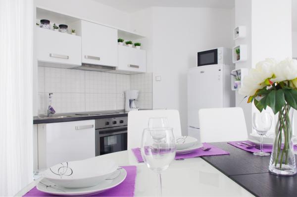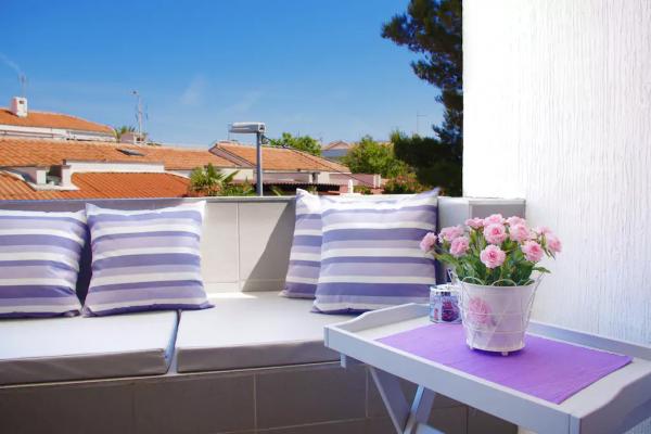 Turistička pristojba je uključena u cijenu.Goste će u aparmanu dočekati ohlađeno piće dobrodošlice i nešto slatko. Također, kako bi početak dana bio još ugodniji pripremili smo košaricu sa napitcima za dobro jutro. Kako bismo osigurali sigurnost beba i mlađe djece tijekom noći imamo zaštitnu ogradicu za krevet. Apartman je opremljen klimom u dnevnom boravku, kuhinja je potpuno opremljena (mikrovalna, aparat za kavu). U dnevnom boravku se nalazi smart TV sa satelitskim programima. Besplatan WIFI je dostupan u cijelom stanu. Ispred ulaznih vrata nalazi se zaštitna ograda, tu je moguće odložiti bicikl, dječja kolica, gumene rekvizite za plažu.