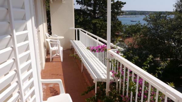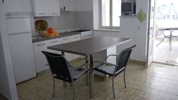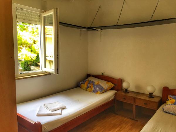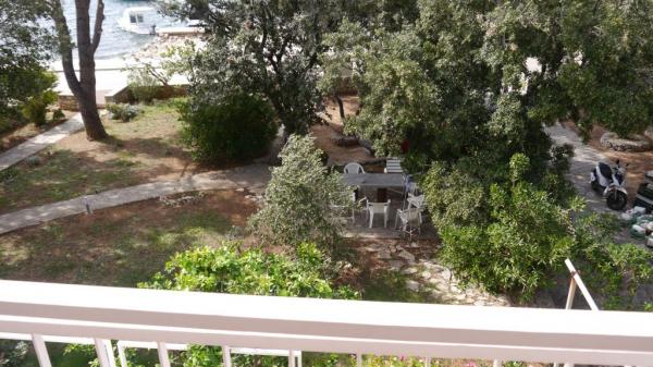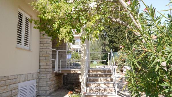Kuća ima 5 apartmana za ukupno 18 osoba. Kuća se nalazi prvi redo do mora u Novalji. Okružena je velikim vrtom. Grill se nalazi u vrtu. Svi apartmani imaju pogled na more s balkona, klima uređaj, wi-fi, parkirno mjesto. Kuća je udaljena od centra (cca 500m), od mora i plaže (cca 10m), od autobusne stanice (cca 50m).