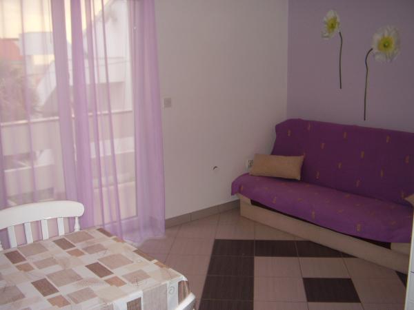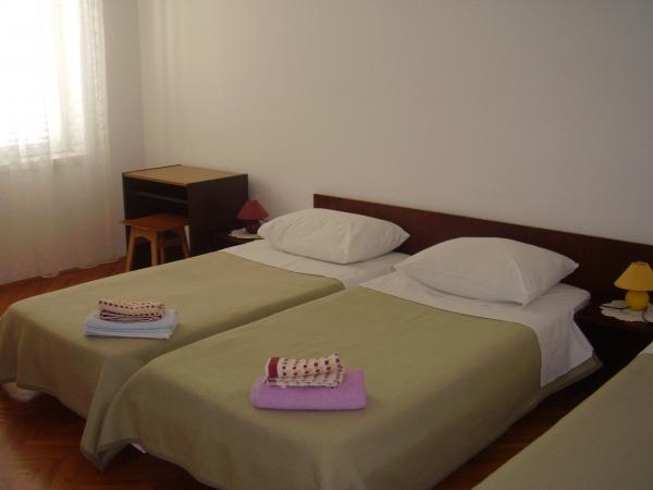 Iznajmljujemo 2 apartmana za 2 do 5 osoba. Udaljeni smo od mora 2 min. hoda, a od centra 5 min. Apartman A5 ima 2 spavaće sobe(jedna soba ima bračni krevet, a druga 3 zasebna kreveta), kupaonu i kuhinju sa blagavaonom. Apartman A2 1 ima 1 spavaću sobu(2 kreveta), kupaonu i kuhinju sa blagavaonom plus pomočni krevet za jednu osobu( 2 djeteta) Parking. Wifi.