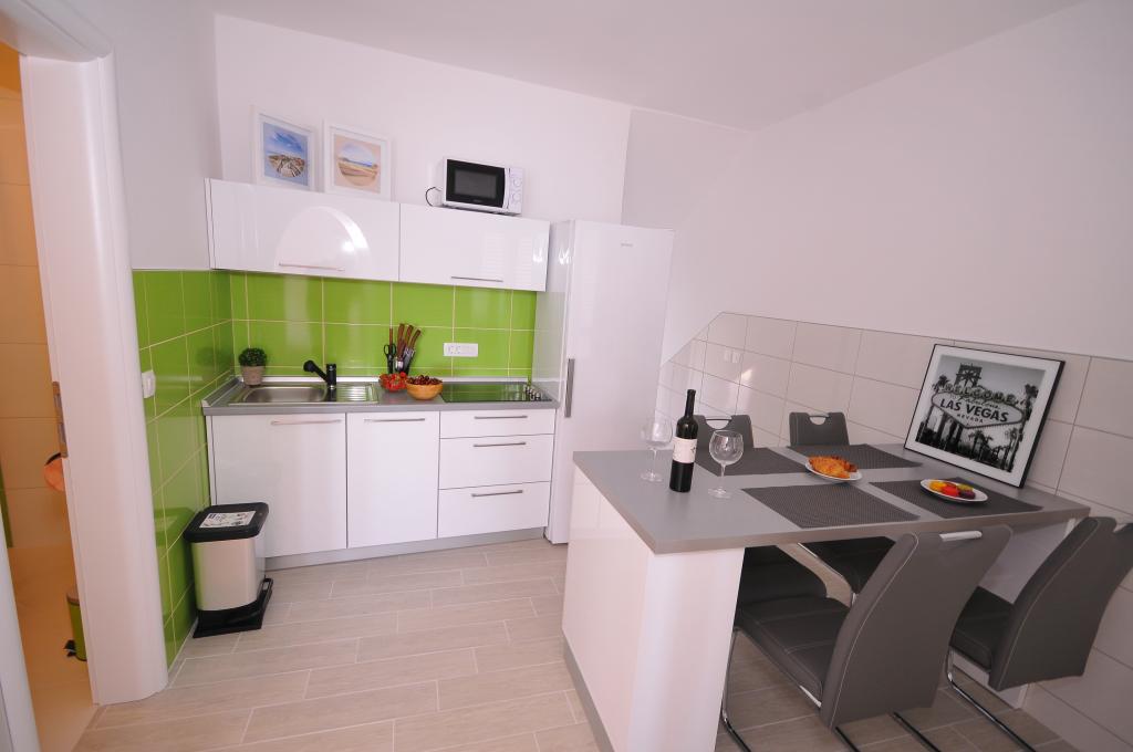 Turistička pristojba nije uključena u cijenu.Svi apartmani imaju pogled na more. Moderno su opremljeni. Nalazimo se 100 m od mora. U našem restoranu nudimo doručak, polupansion, puni pansion. Restoran je otvoren svaki dan od 08:00 do 23:00 sata. Nudimo svježe pripremljenu hranu, ribu i meso sa grilla, pizze, tjestenine, razne salate te slastice. Objekt ima i kafić sa alkoholnim i bezalkoholnim pićima, espresso kavom, sokovima. Pružamo mogućnost transfera iz zračne luke Zadar i Split.