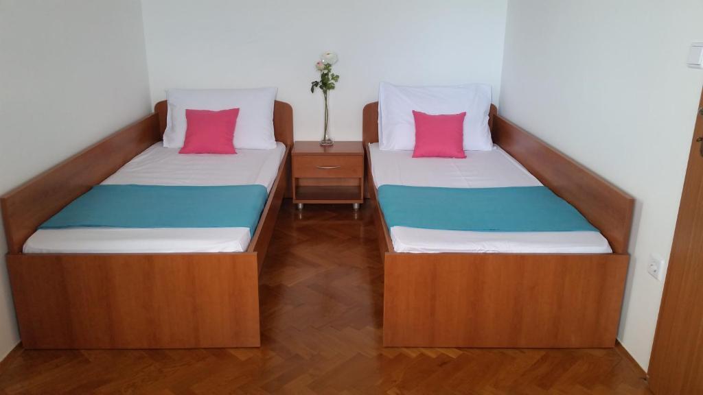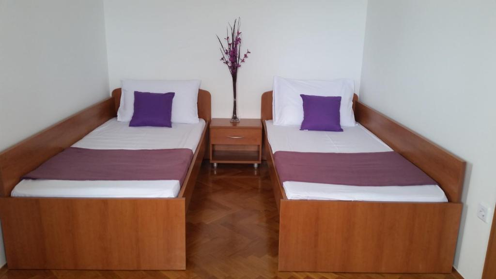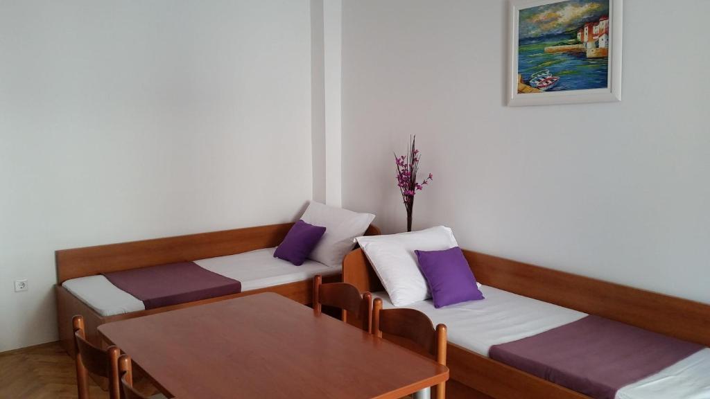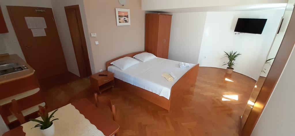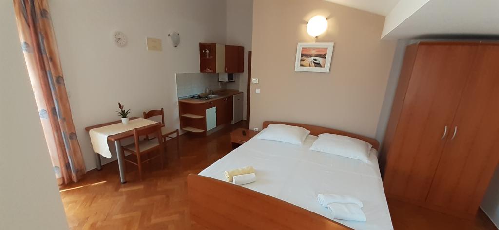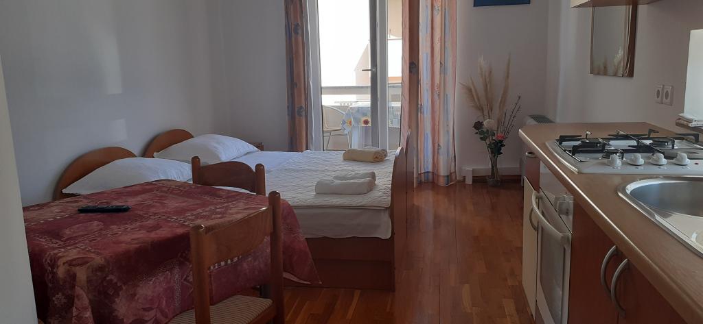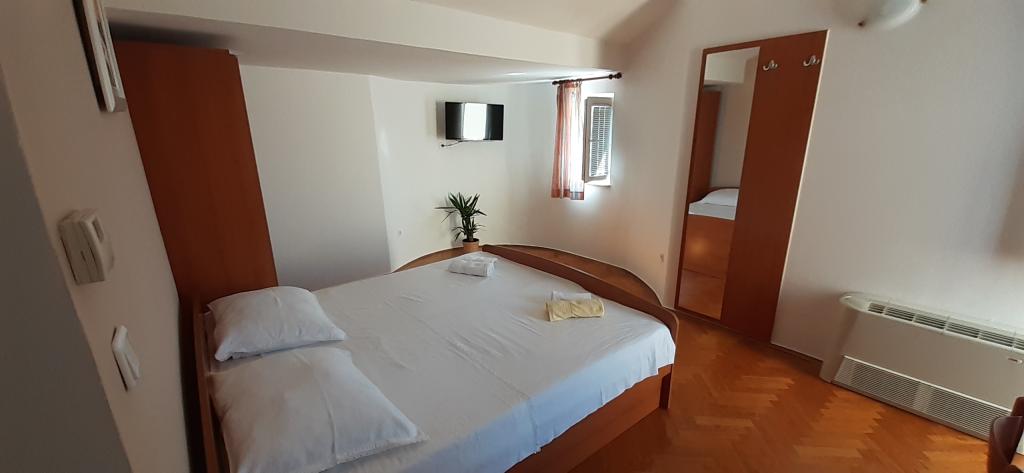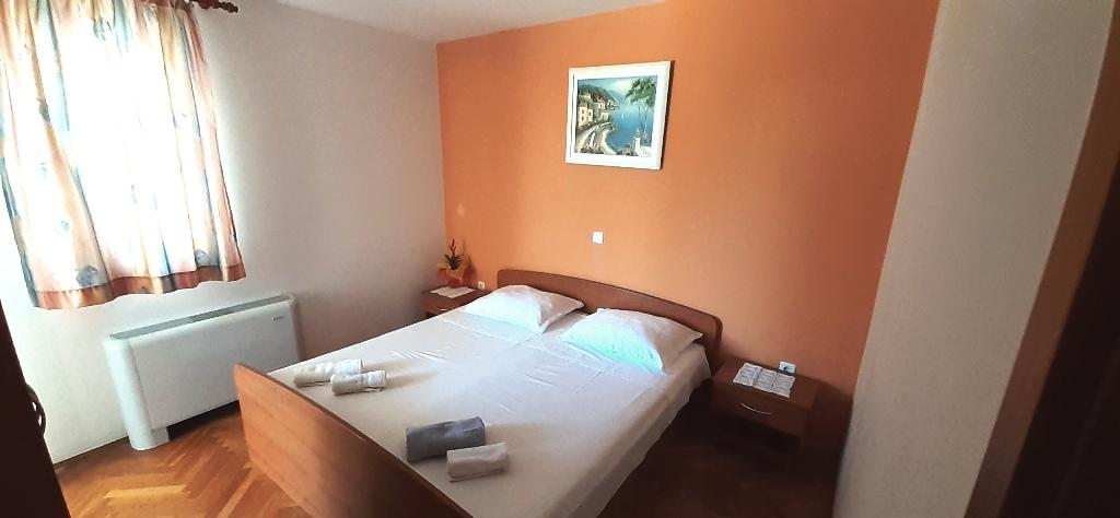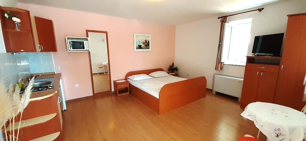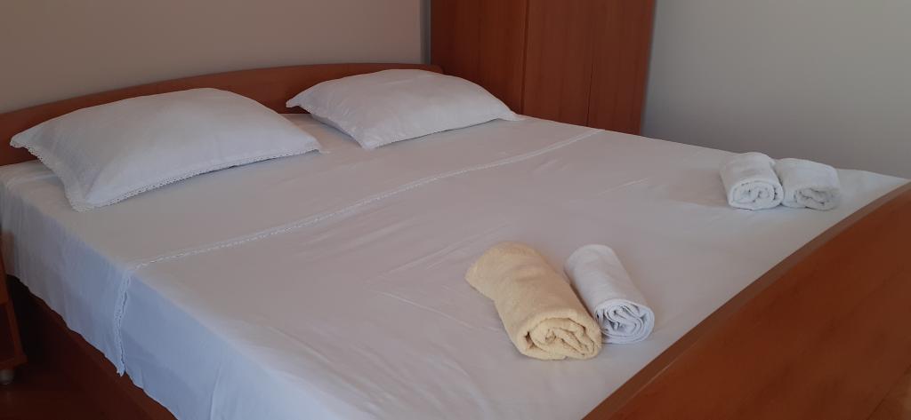 Dragi gosti, dobro došli na web stranice gdje vam predstavljamo našu ponudu smještaja i ponudu grada Novalje. Nudimo vam 5 apartmana i 3 studio apartmana. Svaki od njih opremljen je kompletnim kuhinjskim priborom, ručnicima i posteljinom, a po dogovoru, na raspolaganju stoji i roštilj. Kuća se nalazi 5 minuta hoda do centra i do plaže. U blizini objekta nalaze se trgovine i restorani a do centra Novalje apartmani su udaljeni 500 m. Svi apartmani imaju i televizore sa satelitskim programima, te klima uređaje. Novalja - turističko središte otoka Paga, poznato ljetovalište i odredište brojnih turista, nudi mogućnost aktivnog i sadržajnog odmora. Prirodne ljepote Novalje najjače se očituju u njenim prekrasnim plažama – Zrće, Caska, Straško, Babe, Trinćel, Braničevica i Vrtić. - Djeca imaju popust na cijenu smještaja. - Djeca do 12 godina = 0, 00 € na pomoćnom krevetu. Pomoćni ležajevi su registrirani samo za djecu.