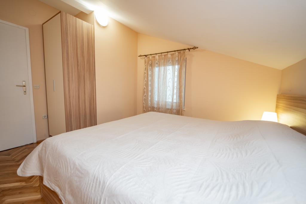 Odlična lokacija, malo udaljena od gradske vreve, vlasnici super, nenametljivi. Apartman ima poseban ulaz, ispred kuće je veliko dvorište sa ležaljkama i igralištima za djecu, a more je vrlo blizu.