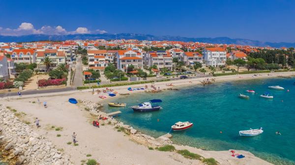 U našem domaćinstvu nudimo vam smještaj u dva objekta na dvije lokacije sa ukupno osam apartmana različitih veličina, četiri studio apartmana te jedan bungalov (mala kućica). - Bungalov je zaseban objekt odnosno mala kućica u blizini centra i sa pogledom na more. Ima vlastitu terasu i mjesto za parkiranje. Bungalow je opremljen klima uređajem i u njemu je dostupan Wifi signal. Smještaj u bungalovu pogodan je za tri odrasle osobe ili dvije odrasle osobe i dvoje djece. - Studio apartmani su klimatizirani te je u njima dostupan Wi-Fi signal. Nalaze se u blizini centra Novalje i udaljeni su od mora 100 m. U jednoj prostoriji nalazi se kuhinja i krevet za dvije osobe (bračni krevet). Svaki studio apartman ima kupaonicu s WC-om u kojoj se nalazi tuš kada. U neposrednoj blizini objekta nalazi se gradska plaža i restorani. Više informacija sa cijelom ponudom našeg smještaja možete vidjeti na našoj web stranici, link prema našoj web stranici nalazi se ispod, na dnu ove prezentacije