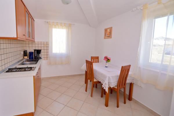 Bili smo tamo i malo smo se razočarali. Nismo dobili apartman koji promoviraju online. Budite oprezni! Online prodaju samo 3 apartmana, ali u stvarnosti ih ima barem 9. To je prvo što nas je zasmetalo. I nisu svi gosti jednaki - neki se "usidre" za određeno mjesto (npr. pod "nadstrešnicom") i misle da je sve njihovo. Rečeno je da su ležaljke tamo - da, ako ih odaberete. Mnoge su pokvarene i "rezervirane". Stvarno nam se ne sviđa ovo natjecanje, tko će prvi postaviti ručnik, a onda nema nikoga pola dana. Još jednom naglašavam da ima puno apartmana i nismo dobili ono što smo vidjeli na fotografijama. Trebali smo odsjesti u apartmanu 4+2, ali ovdje nema opcije da ostane 6 osoba (morate pomaknuti stol u kuhinji ako žele sjediti 4 osobe, pa gdje biste ih stavili 6?). Terasa je mala, suncobran su nam posudili gosti iz drugog apartmana. Uništene mreže protiv komaraca i rolete, zavjesa u tušu. Ukratko, obmanjivanje gostiju! Rezervirali smo ovo jer smo stvarno mislili da imaju samo 3 apartmana i da vlasnici ostalo imaju za sebe. Jedina prednost je što je plaža stvarno blizu (ispred kuće) i što je mirno selo (ali se preko puta vidi Zrče, pa se ne mogu imati otvoreni prozori navečer jer se sve čuje). Također nam se ne sviđa more ovdje - preplitna voda i blato i trava. Ne može se ni normalno plivati, a kad hodaš po vodi, sav taj blato se diže i kao da si u jezeru.