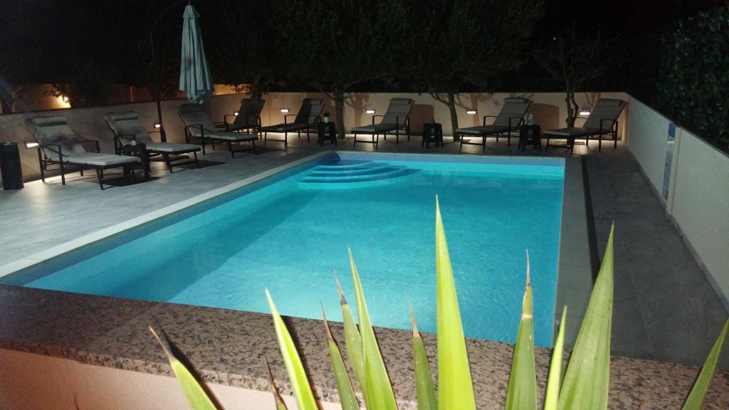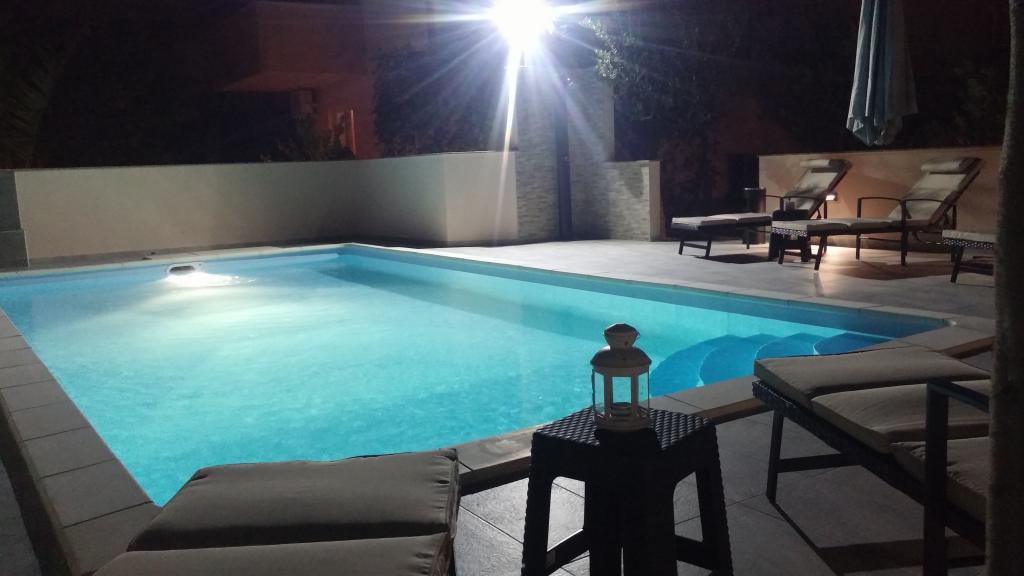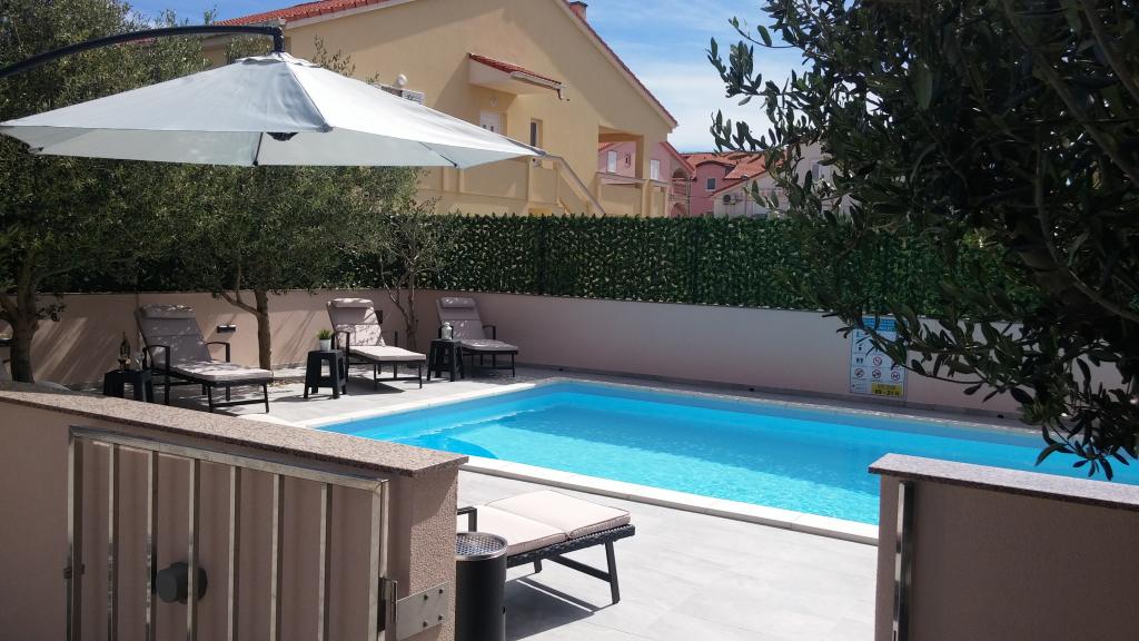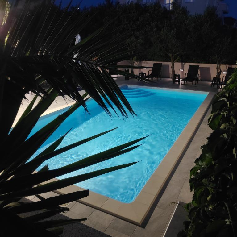 Villa Petra & Sanja (Vila s bazenom) nalazi se u NOVALJI na lijepom otoku PAGU, smještena usred vrta, okružena maslinama i palmama. Gostima je na raspolaganju vanjski bazen, korištenje roštilja, besplatan Wi-Fi, parkirno mjesto, udobne i moderno namještene sobe. Svi klimatizirani apartmani uključuju balkon s prostorom za sjedenje, potpuno opremljenu kuhinju i kupaonicu. Svi apartmani na raspolaganju imaju mikrovalnu pećnicu, perilicu za suđe i perilicu za rublje. Za rezervaciju je dostupno 6 apartmana s jednom ili dvije spavaće sobe. Svega desetak minuta hoda do pješčane plaže i priobalne šetnice koja vodi do središta Novalje. Ostale predivne pješčane, šljunčane i stjenovite plaže najljepše su na Jadranu i udaljene na svega nekoliko minuta vožnje automobilom. Taxi stajalište je udaljeno je 10 metara od objekta. U blizini je i poznata plaža ZRĆE.