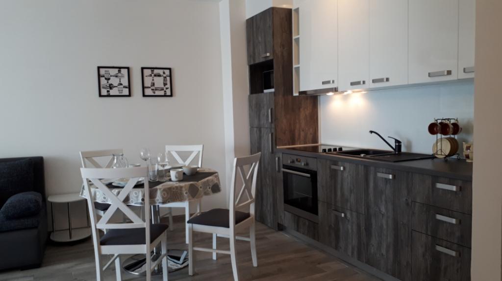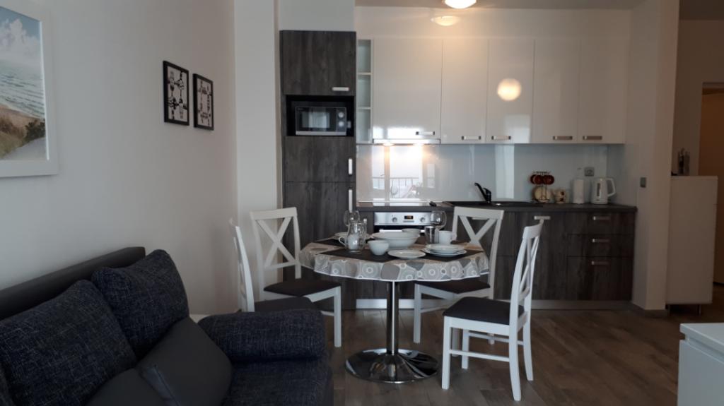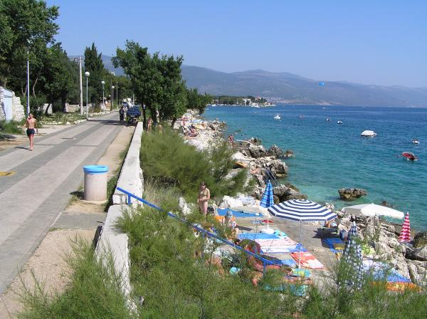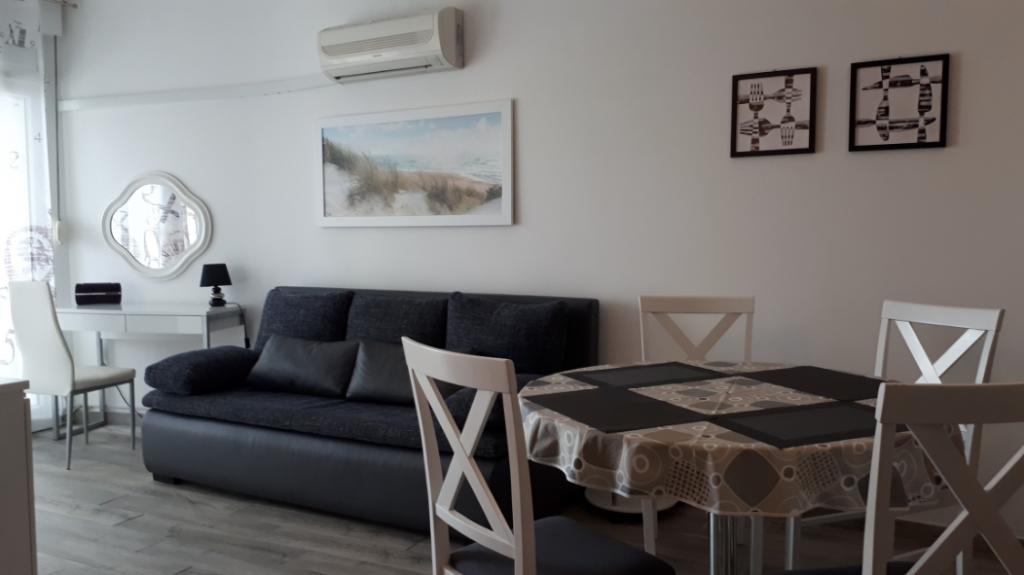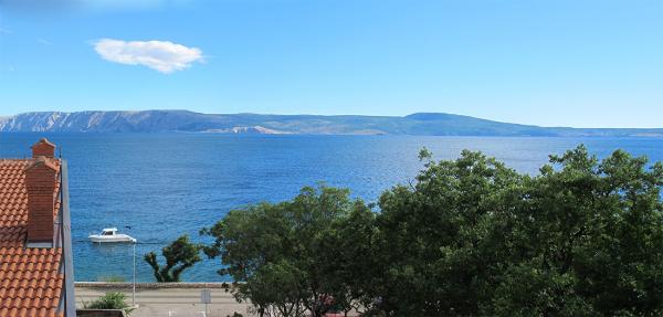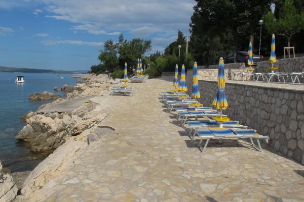 Novoopremljeni apartman, 50 metara od mora, u mirnom dijelu Novog Vinodolskog. Apartman se sastoji od jedne dvokrevetne spavaće sobe s TV-om, dnevnog boravak s pomoćnim krevetom za dvije osobe, i TV-om. Kompletno opremljena kuhinja s blagovaonom: električno kuhalo, napa, pećnica, mikrovalna pećnica, hladnjak sa zamrzivačem, perilica posuđa, kuhalo za vodu i toster. Kupaona - tuš kabina, umivaonik, WC, bide, perilica rublja i sušilo za kosu. Balkon s pogledom na more. Apartman je okružen zelenilom, ima uređeno dvorište sa zajedničkim roštiljem. Blizina stjenovitih, šljunkovitih i betonskih plaža, samo par minuta hoda. Osigurano parkirno mjesto ispred zgrade.