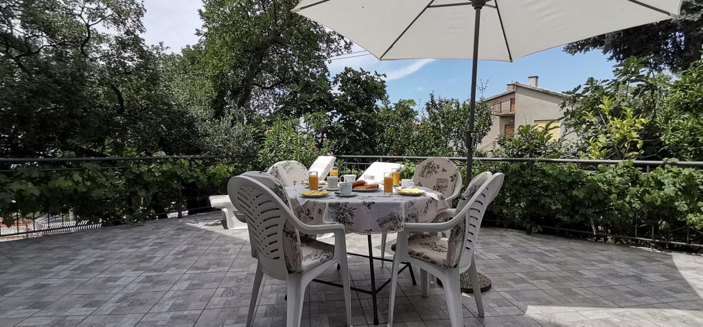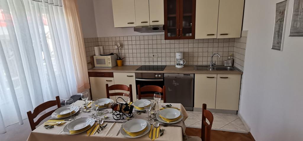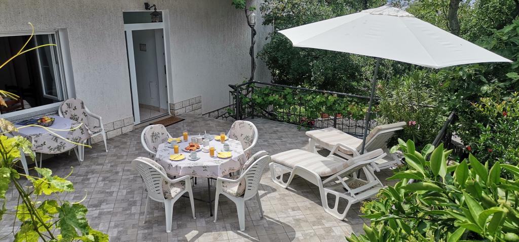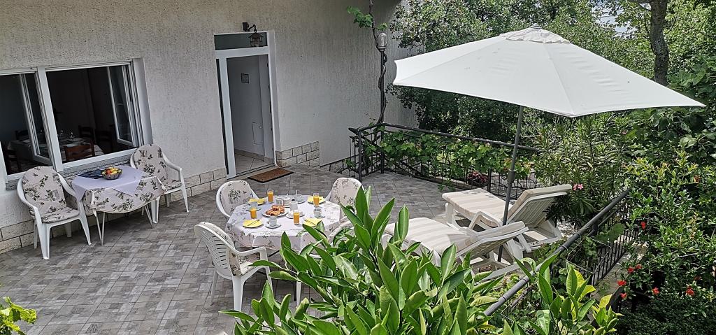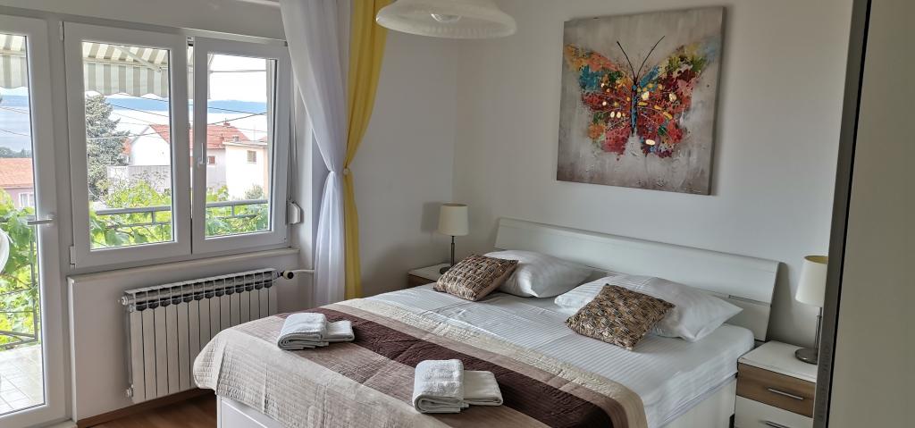 Kompletno i suvremeno opremljen apartman u mirnom predjelu Novog Vinodolskog udaljen 5 minuta hoda od strogog centra grada i 5 minuta hoda od glavne plaže. Kuća s okućnicom, vrtom, velikom terasom i dva velika sobna balkona s pogledom na more. Apartman ima osigurana dva besplatna parkirna mjesta. U dvorištu apartmana gosti imaju na raspolaganju roštilj. Klimatiziran je i svaka soba ima TV sa satelitskim programima.