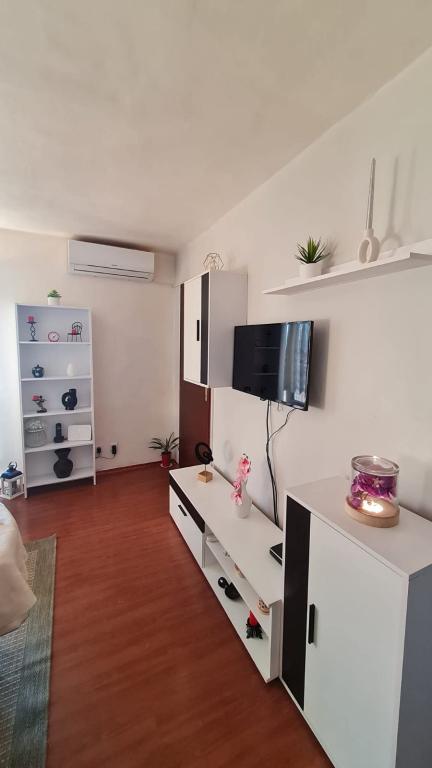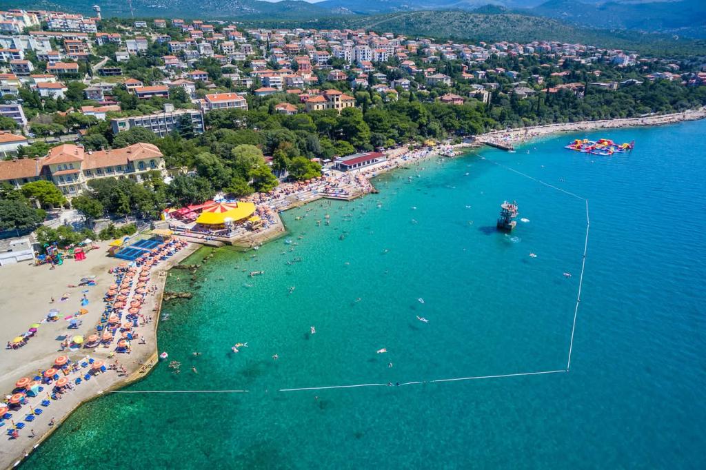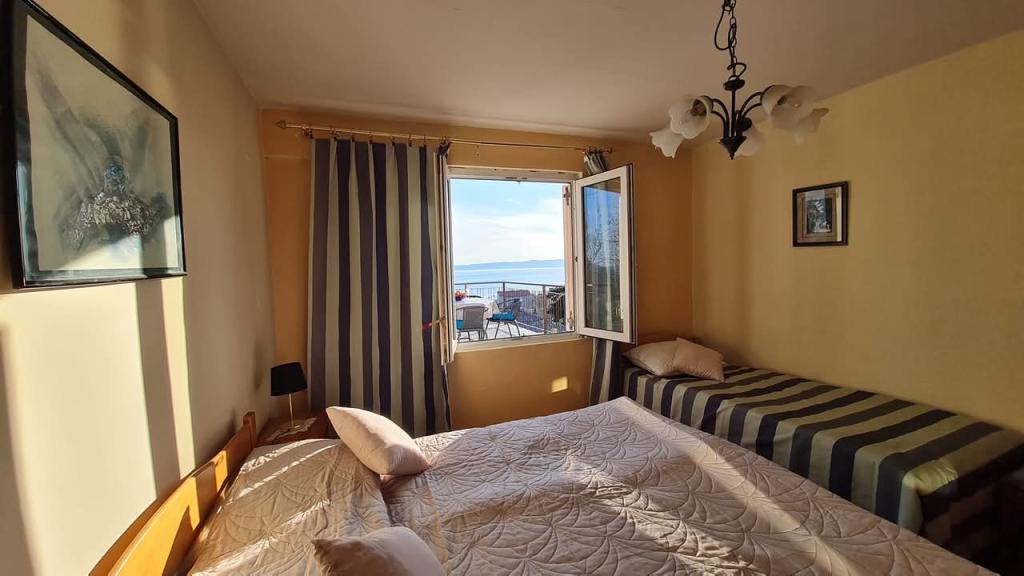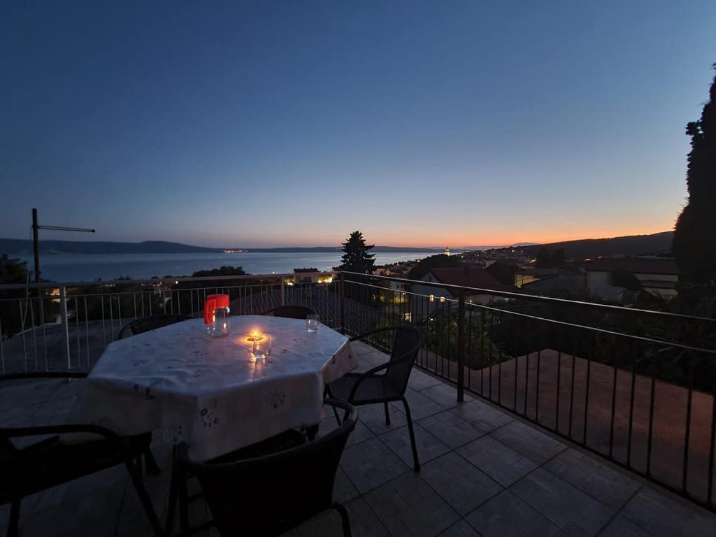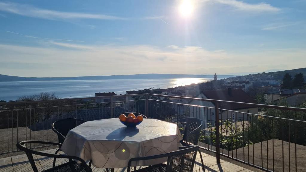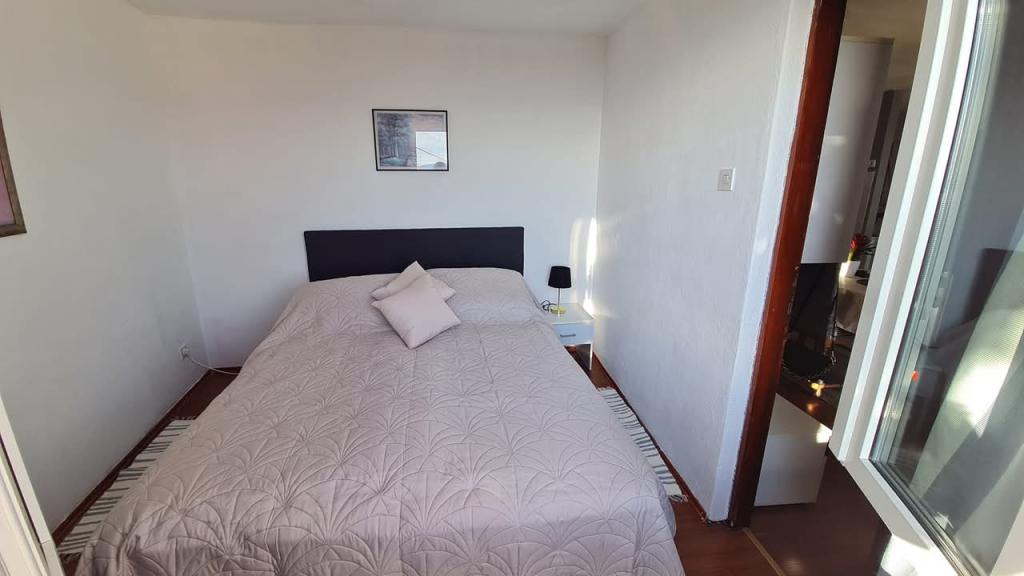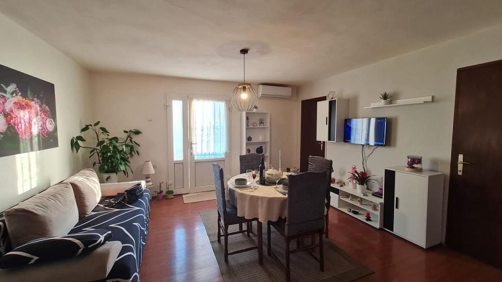 Opremljen apartman sa dvije velike spavaće sobe, kuhinjom, dnevnim boravkom, kupaonom i prekrasnom velikom terasom s koje se pruža pogled na more i centar grada. Opremljen svim kućanskim aparatima (perilica rublja, perilica posuđa, mikrovalna, toster, pećnica, kuhalo za vodu, električni grill). Parking, klima i WiFi su uključeni u cijenu. Apartman je smješten na 5 min od centra grada i 10 min od glavne plaže.