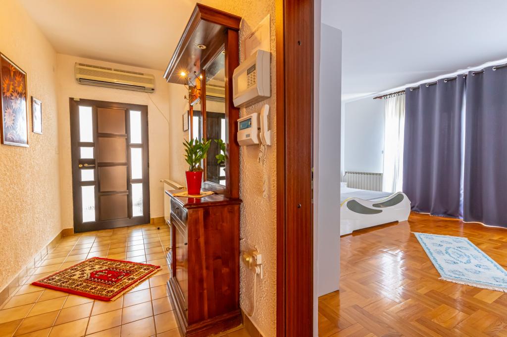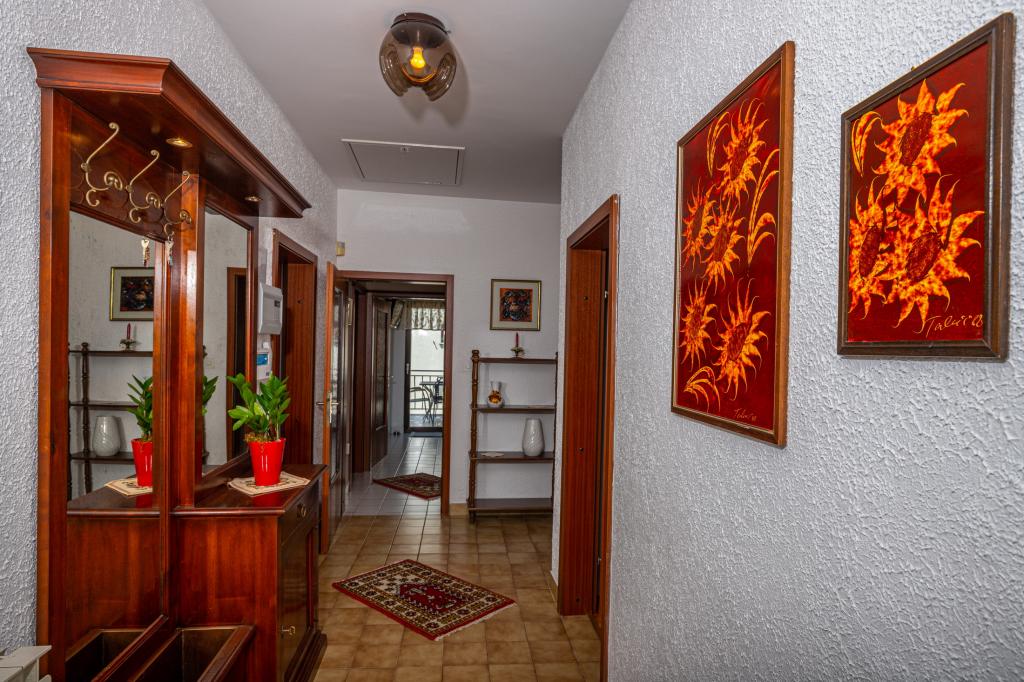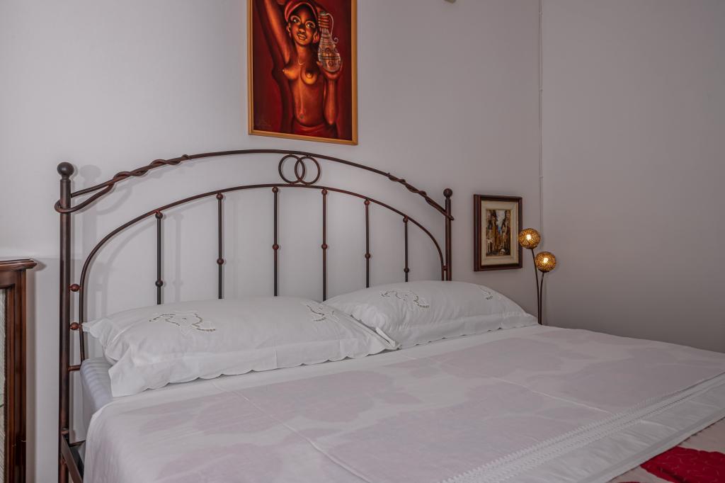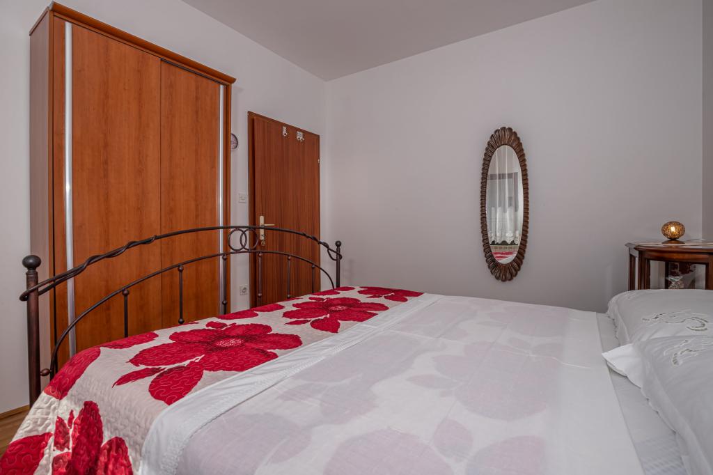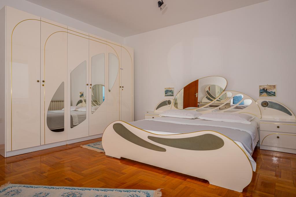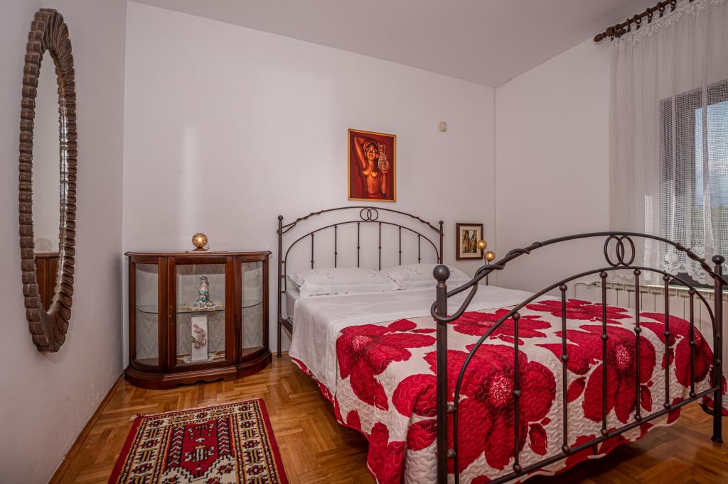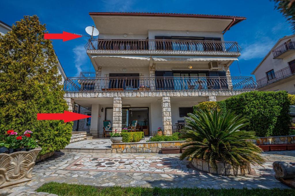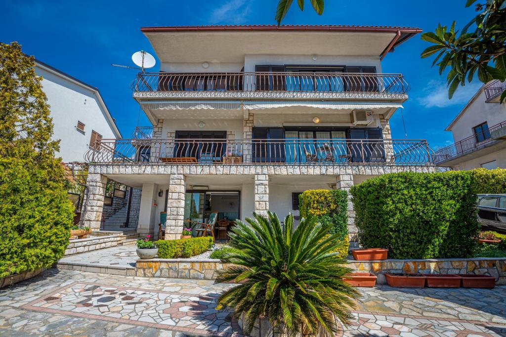 Apartman Laura je smješten u obiteljskoj kući. Na 1.katu kuće nalaze se 3 spavaće sobe, 2 kupaone s tušem, kuhinja s balkonom. Dvije spavaće sobe imaju balkon s pogledom na more. Ukupna veličina ovog dijela apartmana je 100m2. Apartman Laura je jedini apartman u objektu koji se iznajmljuje tako da ćete imati potpunu privatnost tijekom svog ljetnog odmora. U dvorištu se nalazi roštilj koji je na raspolaganju gostima. More i plaža nalaze se svega nekoliko minuta pješice niz ulicu dok je centar grada 900 m od kuće.