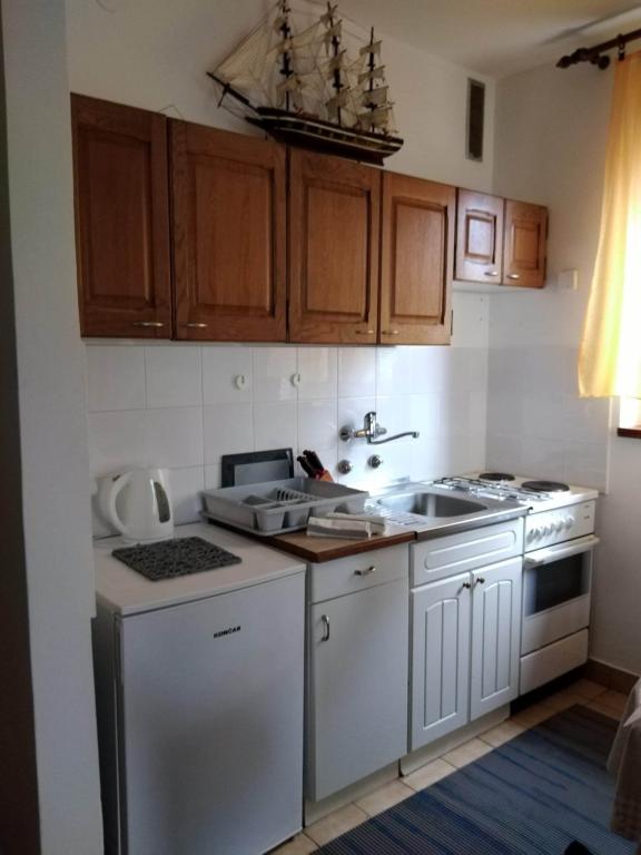 Apartman sa sobom za dvije osobe plus jedan pomoćni ležaj. Apartman se nalazi 5 minuta hoda do centra te 8 minuta hoda do plaže.