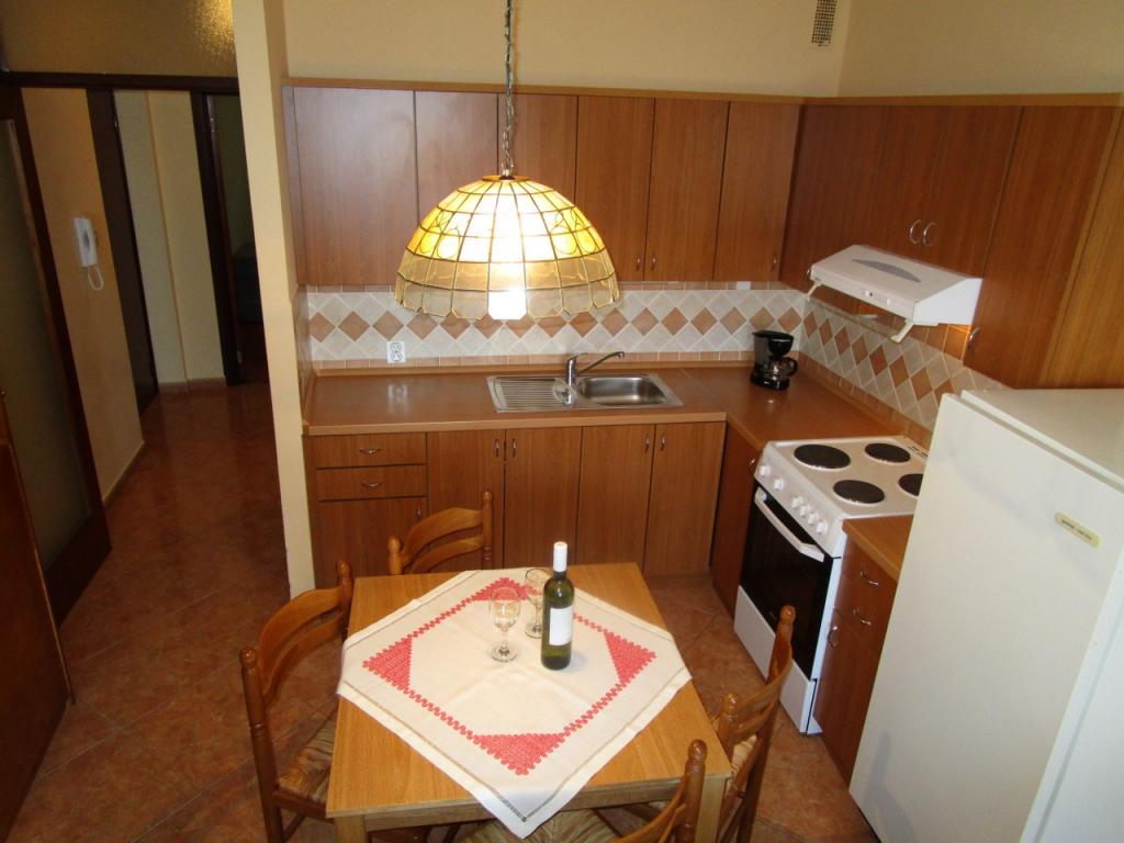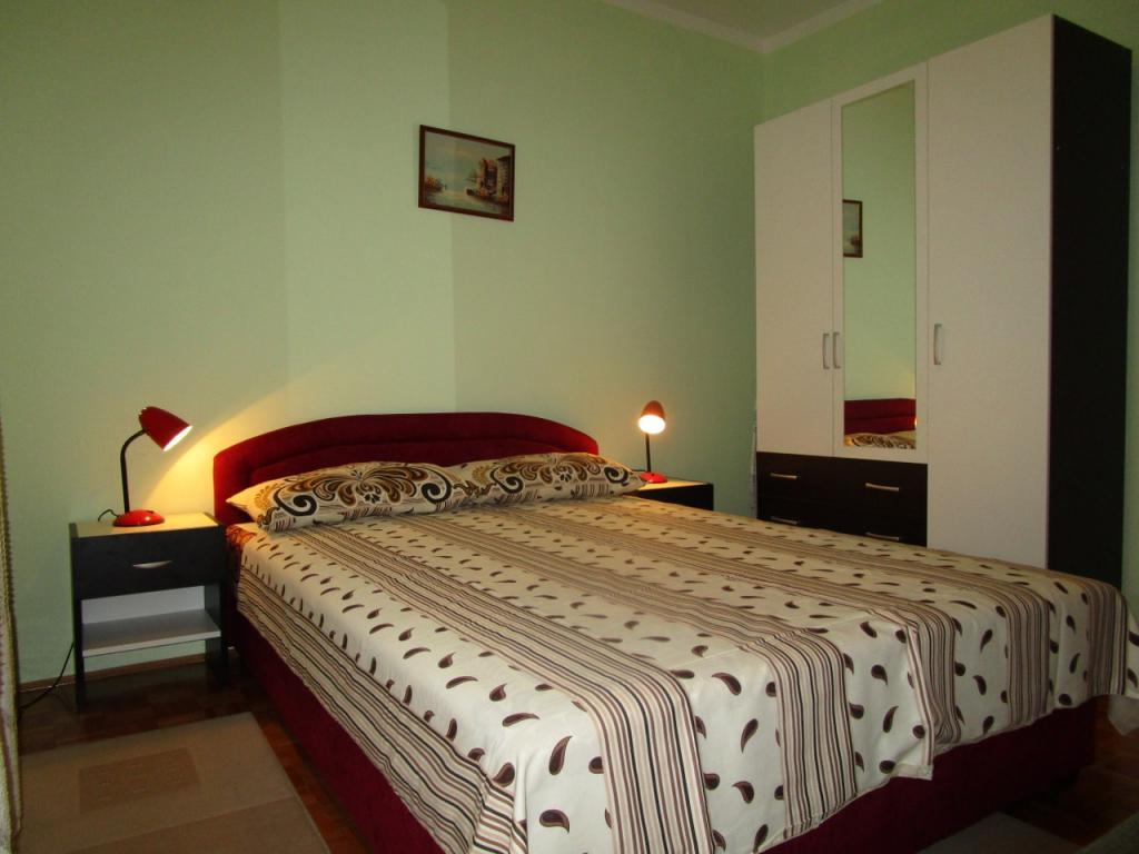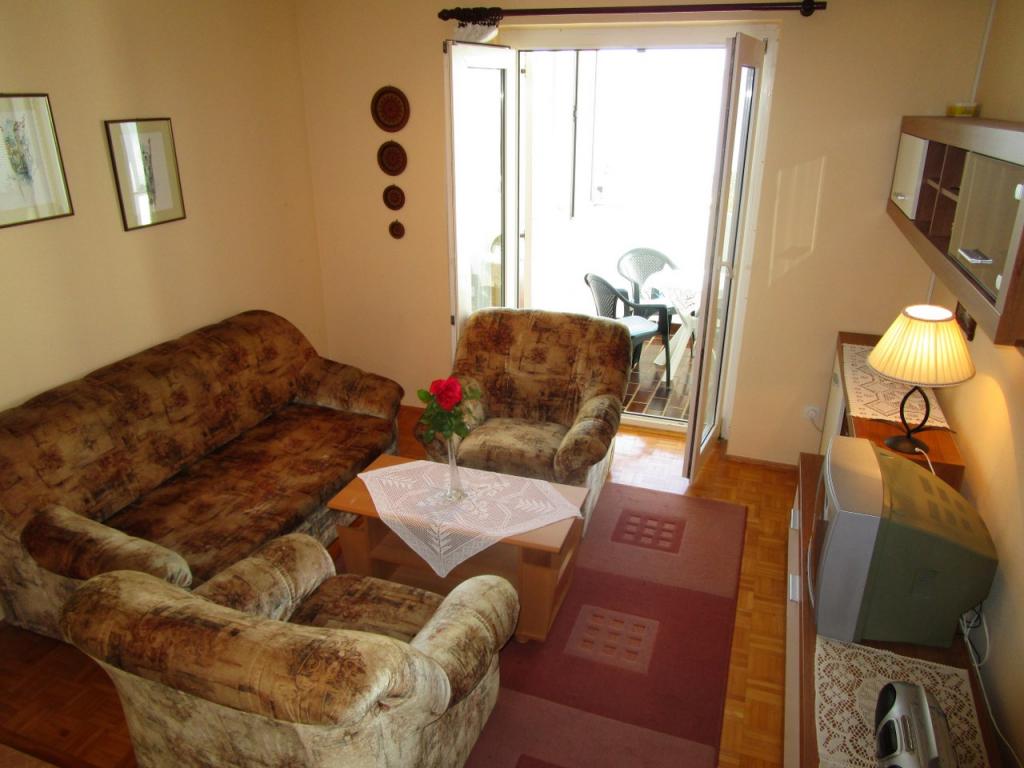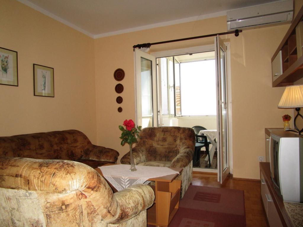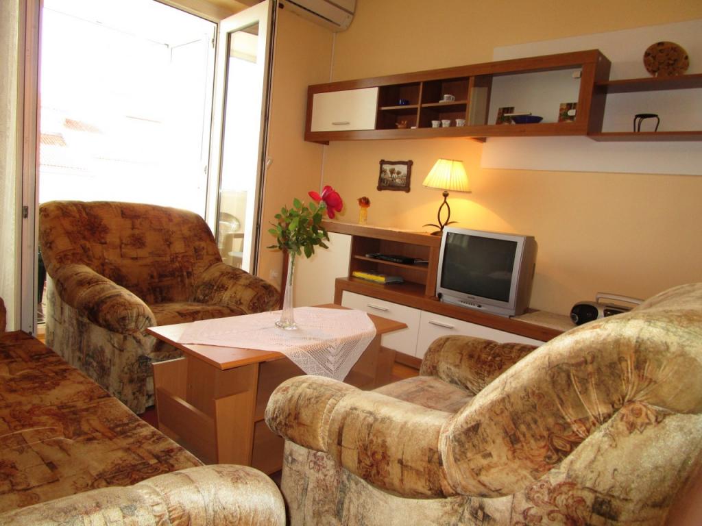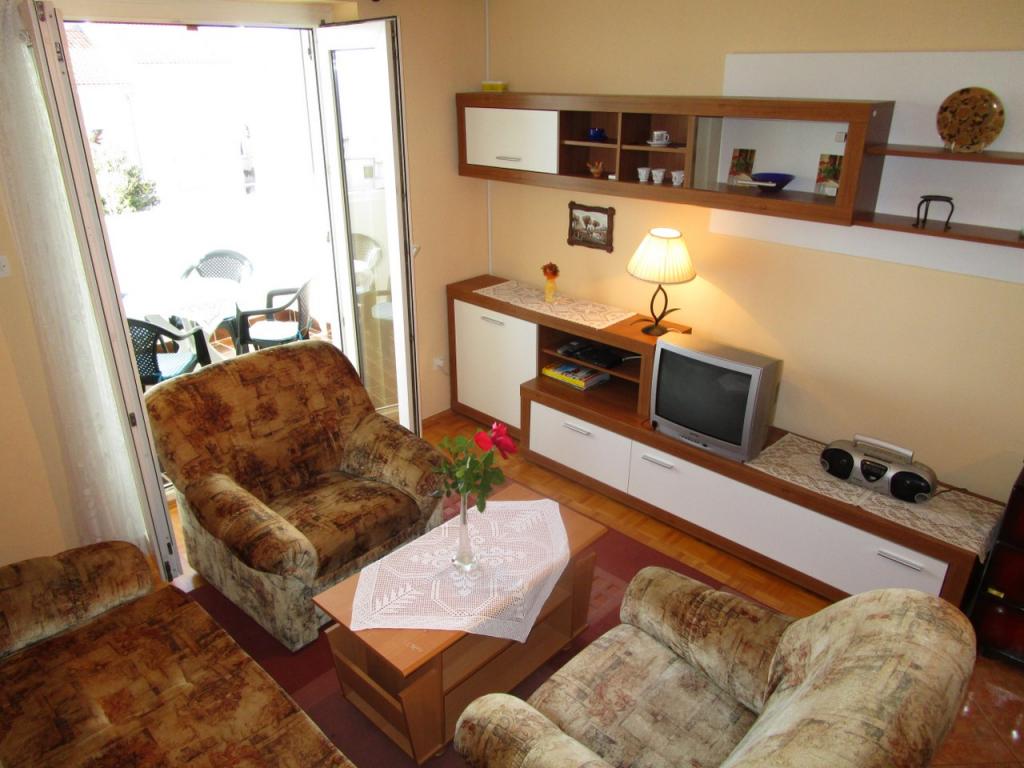 Suvremeno opremljen apartman nalazi se u uzvišenom i mirmom dijelu grada u visokom prizemlju u stambeoj zgradi sa tri kata. Apartman se sastoji od ulaznog hodnika iz kojeg se ulazi u dnevni boravak sa modernom kuhinjom. U dnevnom boravku se nalazi trosjed na razvlačenje, stolić i dvije fotelje, kao i vitrina od dva dijela sa TV-om i radio aparatom, i klima uređajem. Kuhinja je opremljena sa gornjim i donjim kuhinjskim elementima, štednjakom na struju i frožiderom, kuhalom za vodu i tosterom. U spavaoj sobi se nalazi bračni krevet za dvije osobe i pomoćni ležaj. U slučaju potrebe pomoćni ležaj se može premjestiti u dnevni boravak, a u sobu se može smjestiti dječju krevetić. U spavaćoj sobi ima garderobni ormar i dva noćna ormarića. Kupaonica je opremljena sa tuš kadom i kupaonskim ormarićem i WC školjkom. Iz dnevnog boravka se izlazi na balkon koji se može zatvotiti i po potrebi klimazizirati. Sa balkona ima lijep pogled prema moru i gradu. Ispred zgrade se nalaze parkirna mjesta