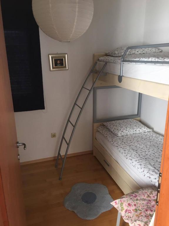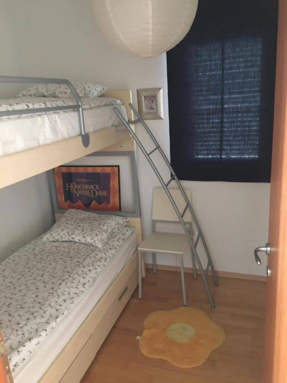 Turistička pristojba je uključena u cijenu.Apartman se sastoji od malog hodnika, dnevne sobe s velikim kaučem koji služi kao bračni krevet, kuhinje i kupaone. Isto tako, apartman ima dvije odvojene spavaće sobe s krevetima na kat i ormarima. Najljepše mjesto u apartmanu jest terasa s velikim stolom za šestero ljudi.