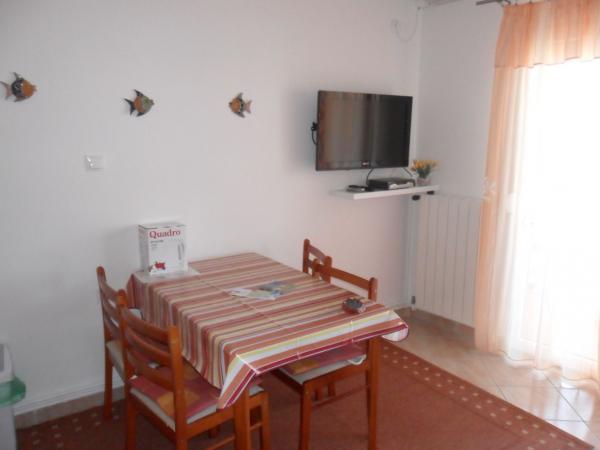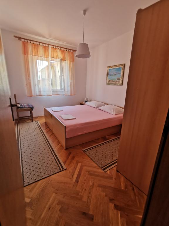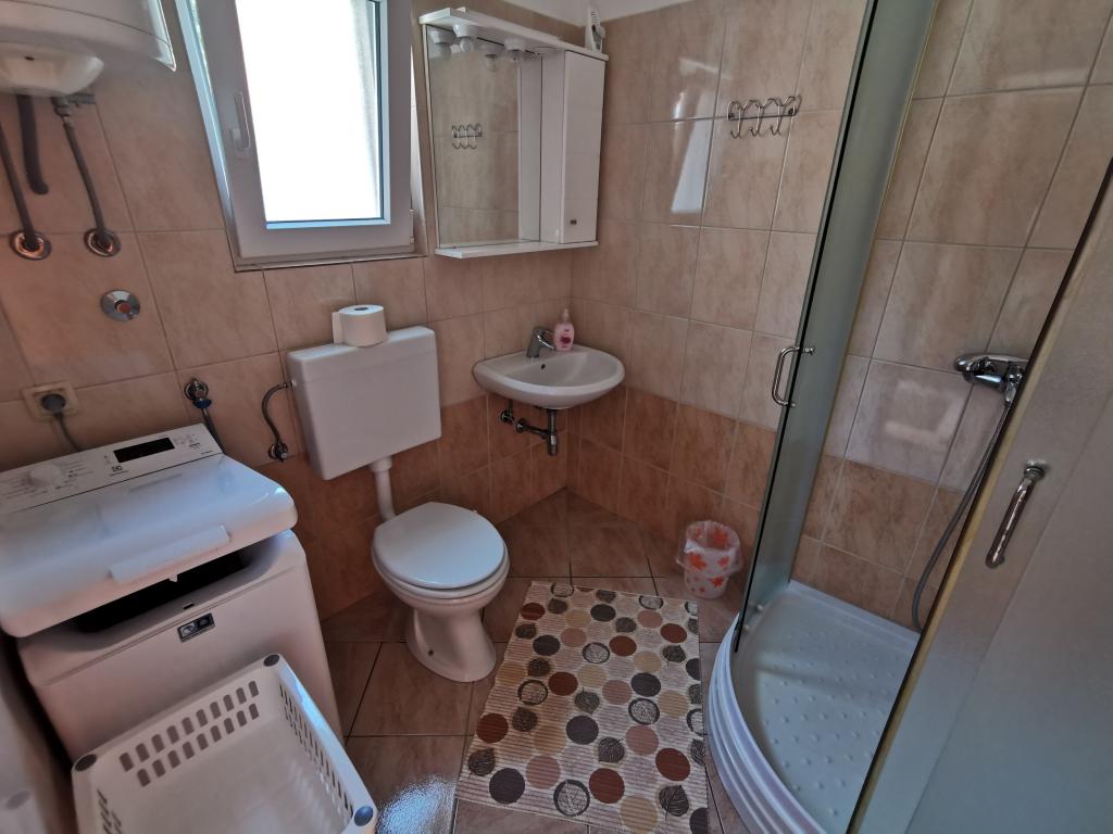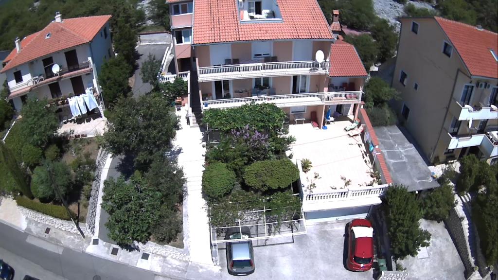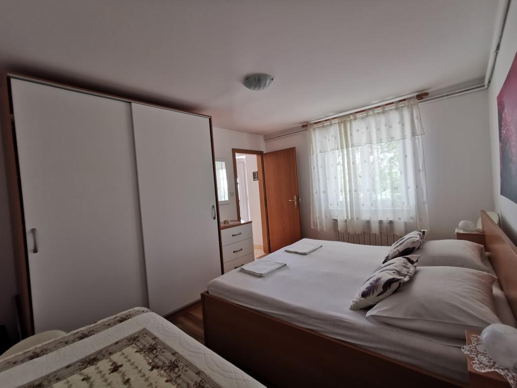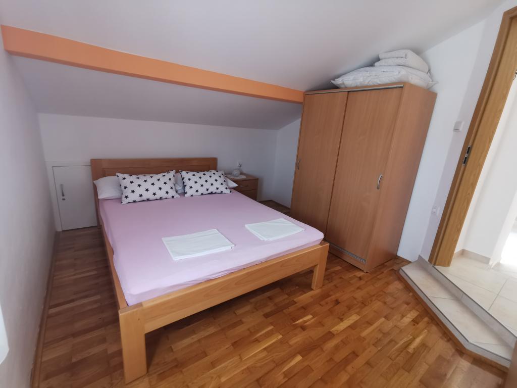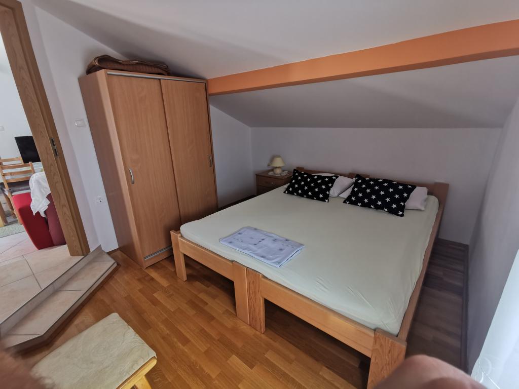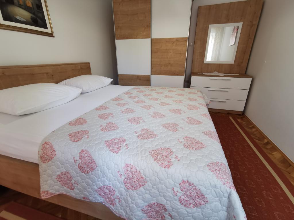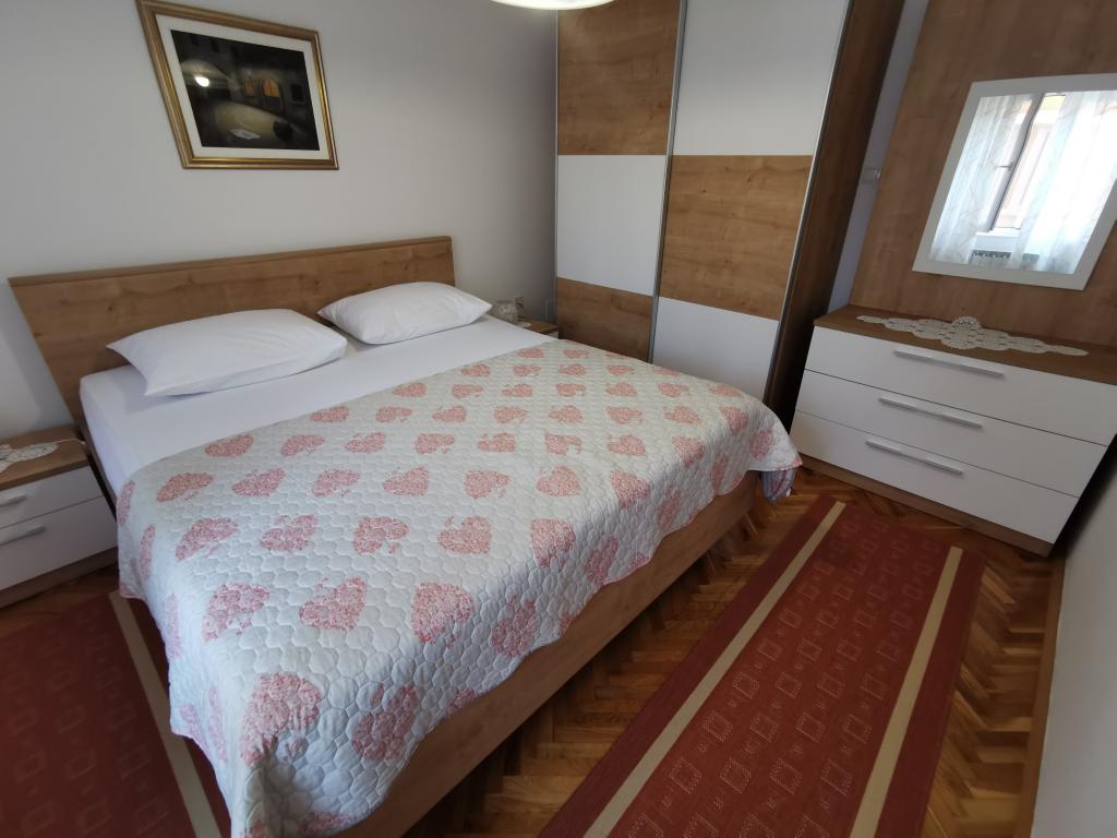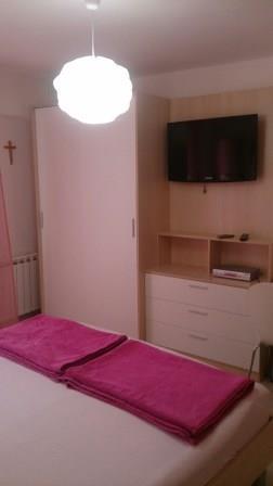 App A STUDIO - za 2 osobe cca 20 m2, u prizemlju obiteljske kuće sa posebnim ulazom. Dvokrevetna soba sa kuhinjom, hladnjak, mikrovalna, TV SAT, kupaonica, terasa, klima. App B za3-5 osoba sa posebnim ulazom, dvokrevetna soba, kuhinja, hladnjak, mikrovalna, kuhalo za vodu, kafe mašina, kupaonica, veš mašina, balkon, klima. APP C za 3-4 osobe, sa posebnim ulazom, dvokreverna soba, kuhinja, hladnjak, mikrovalna, kuhalo za vodu, kafe mašina, kupaonica, veš mašina, terasa, klima. APP D za 8-10 osoba. Četiri dvokrevetne sobe dva pomoćna ležaja, dnevni boravak sa kaučem na razvlačenje, TV SAT, kupaonica sa tušem, druga kupaonica sa kadom i veš mašinom, kuhinja sa posuđem i priborom za jelo, kuhalo za vodu, kafe mašina, veliki hladnjak sa ledenicom, mašina za pranje posuđa, balkon, klima uređaj. Apartman E 4 1 nalazi su u potkrovlju (treći kat). Dvije dvokrevetne sobe, kupaonica sa perilicom, kuhinja sa dnevnim boravkom, TV SAT, perilica suđa. Kauč u dnevnom boravku za 1-2 osobe,