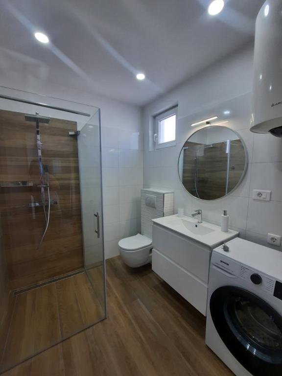 Dodijeljene su nam *** za svaki apartman i studio apartman. Naš objekt je smješten na mirnoj lokaciji, 600 m od centra grada. Do našeg objekta se može doći iz dva smjera, od samog centra, te uz suhu marinu. Uz objekt je privatni parking. Objekt je novouređen. Besplatan Wi-Fi.