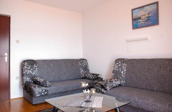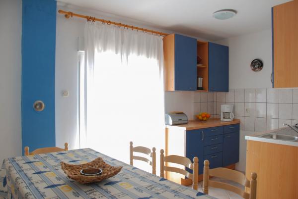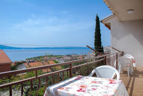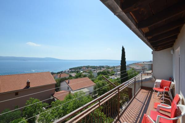 Obiteljska kuća sa dva kompletno i suvremeno opremljena apartmana smještena u mirnom dijelu grada. Od strogog centra grada udaljena 10 minuta hoda te 15 minuta hoda od gradske plaže. Svaki apartman ima vlastiti ulaz, te balkon s pogledom na more i otok Krk. Roštilj sa prostorom za jelo dostupan je korisnicima obaju apartmana. Parking osiguran za sve goste.