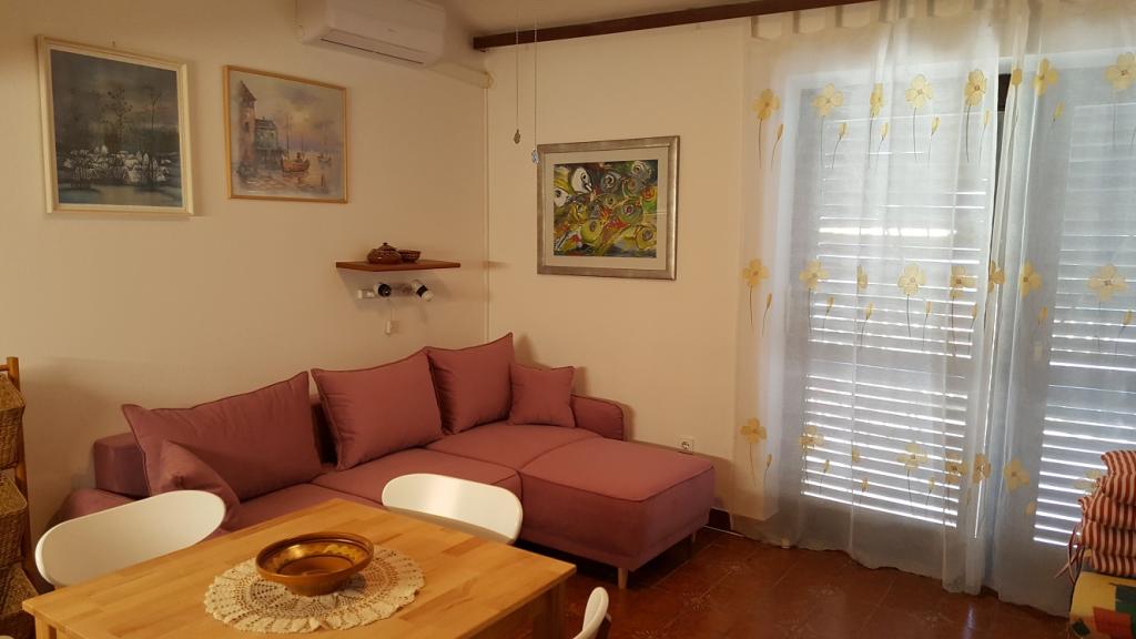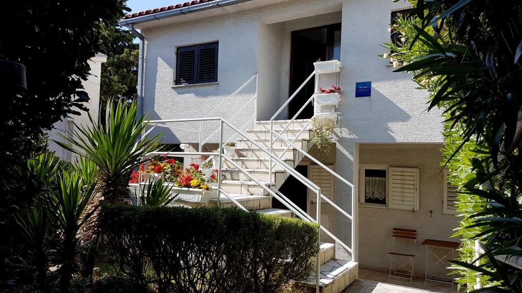 Kompletno opremljeni i suvremeno uređeni apartmani u obiteljskoj kući na prvom katu. Objekt se nalazi u neposrednoj blizini plaža, restorana, trgovačkih centara, marine i luke. Centar je udaljen 15 min hoda u kojem se nalaze svi sadržaji kao banke, ljekarne, muzeji, crkva, tržnica i dr. Objekt je okružen zelenilom i prekrasnim pogledom na more. Osigurana su parkirna mjesta ispred objekta.