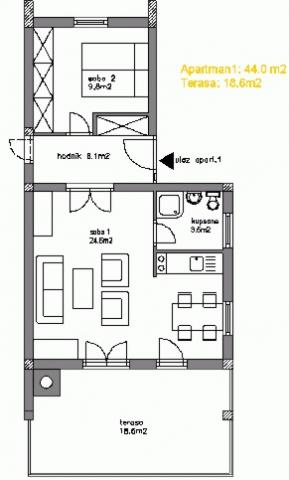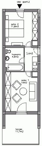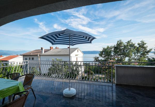 Dvosobni apartman sa velikom terasom, u mirnom dijelu Novog Vinodolskog, na manje od dva sata vožnje od Zagreba. Upotreba roštilja po dogovoru. Napomena: Apartman1 i Apartman2 mogu se povezati i zajednički koristiti. Idealno za dvije obitelji!