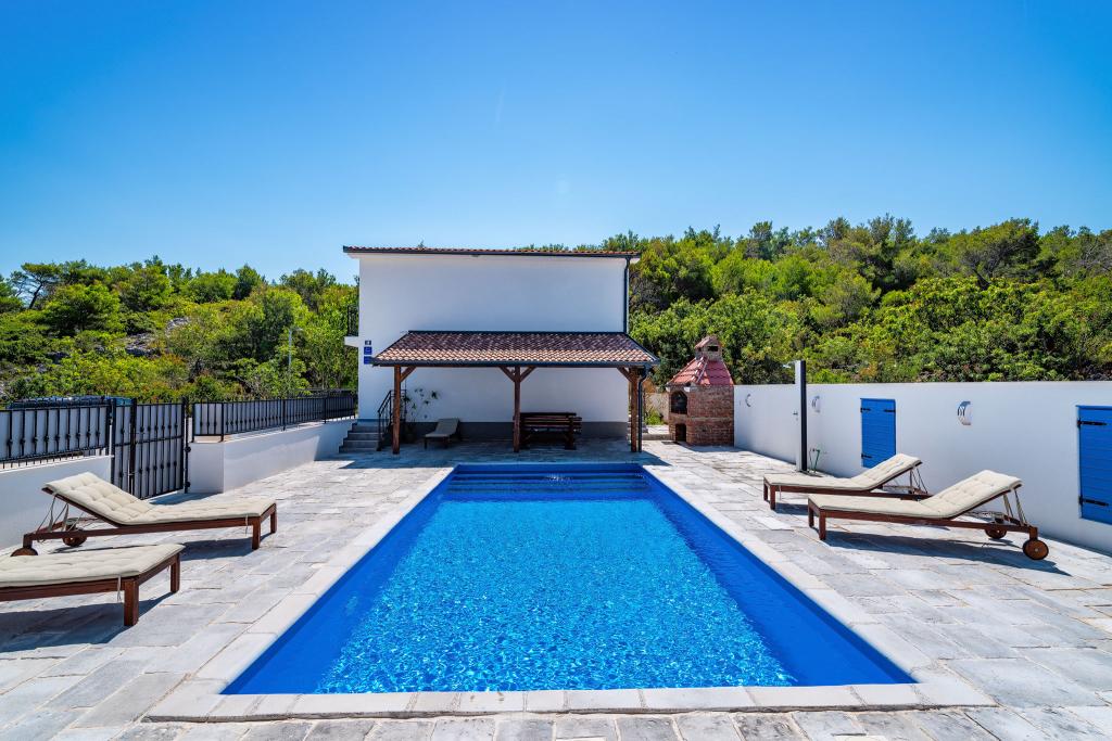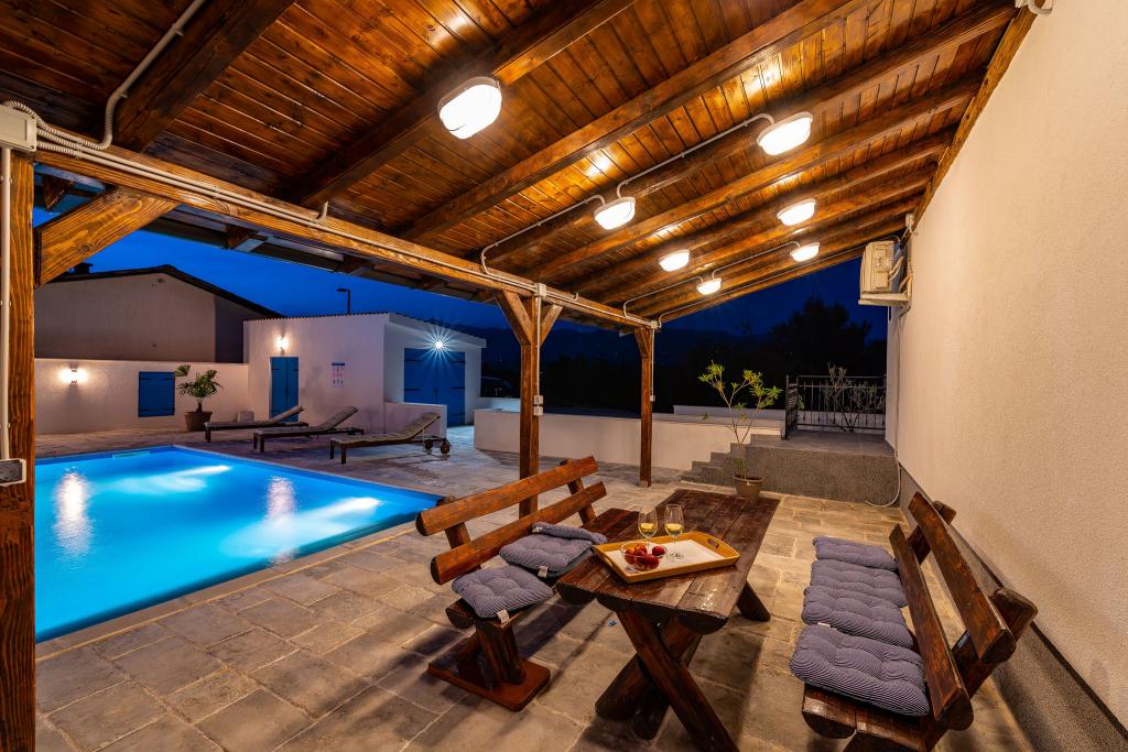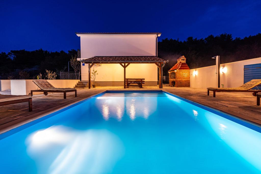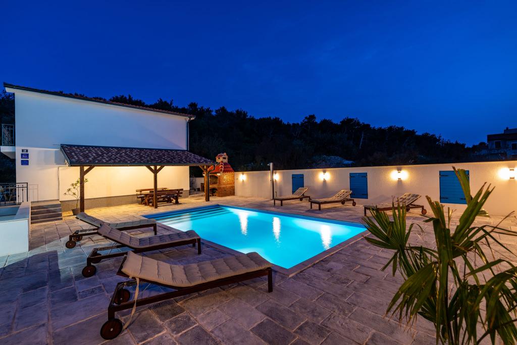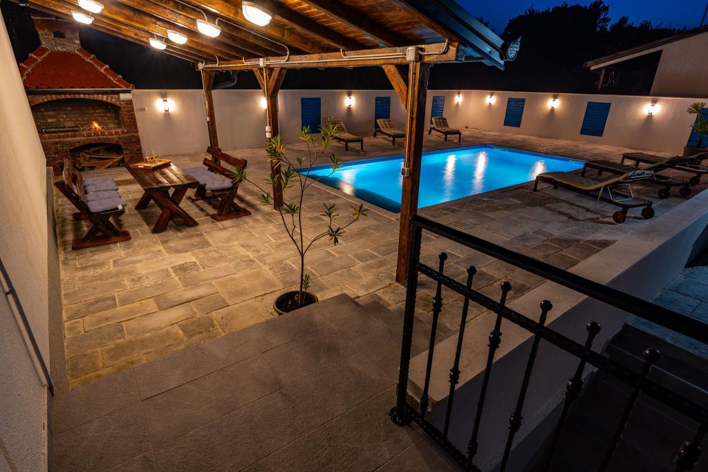 Vitez`s House Novigrad/Knight`s House Novigrad potpuno je novouređena kuća za luksuzan odmor, uz vanjski grill i velik bazen 8x4m. Smještena u malom turističkom dalmatinskom gradiću, s krasnim otvorenim pogledom na Velebit, na kraju slijepe ulice gdje je i u najvećoj vrevi mir i tišina. Kuća ima 2 apartmana. Ukupnog kapaciteta 12 osoba. Može se iznajmiti cijela ili pojedinačni apartman, za 6 osoba. Apartmani su 3s, u prizemlju i na katu. Opremljeni modernim novim kuhinjama s perilicama suđa, kupaonama s prostranim tuš kabinama, tv ravnog ekrana, te svaki sa 1 spavaćom sobom uz king size krevet i 1 sobom s 2 odvojena kreveta. Boravci imaju nove kvalitetne sofe koje se razvlače u king size krevet. Gore je balkon s pogledom na more, donji apartman ima vlastitu veliku terasu. Zajednički su veliko popločano dvorište, ograđeno i zatvoreno od pogleda, veliki gril, te bazen uz 8 udobnih ležaljki. Kuća je luksuzno namještena, s puno pažnje i ljubavi, za vaš ugodan i relaksirajući odmor.