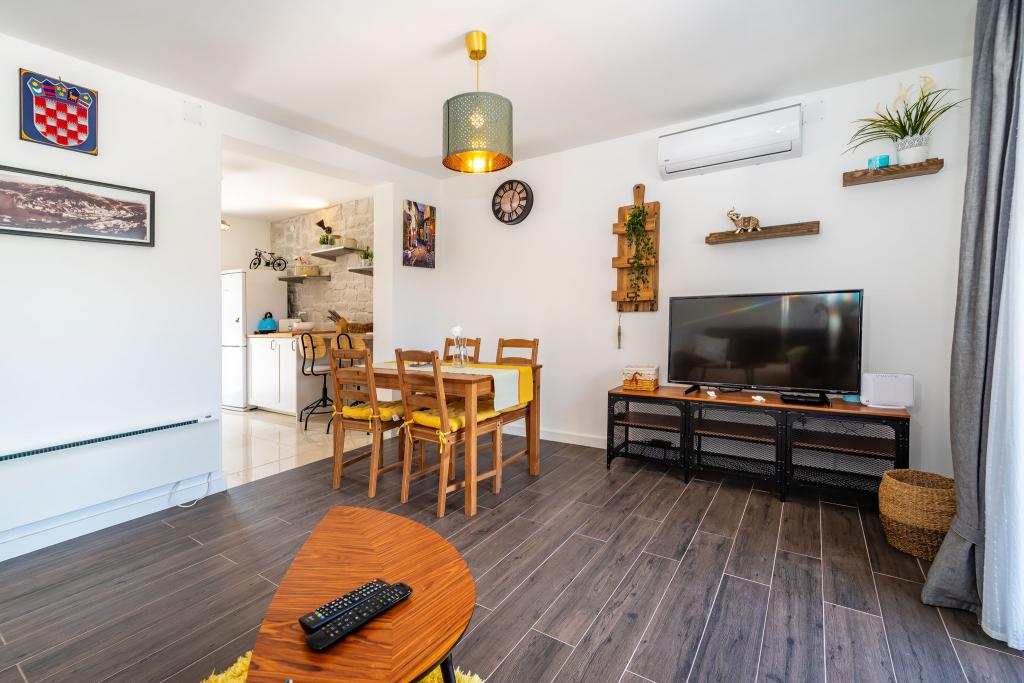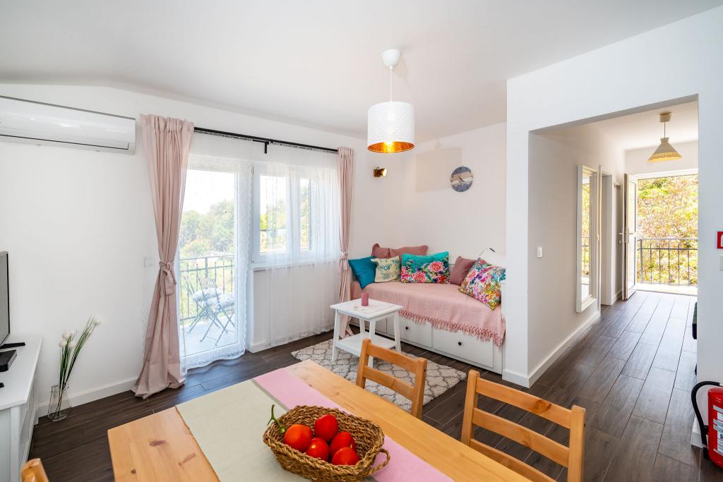 Pročitaj više Smještajne jediniceVrijeme dolaska: 15:00-16:00 sati. Ukoliko gost želi, slobodno može poslati upit o drugačijem vremenu dolaska. Vrijeme odlaska: do 10:00 sati. Moguć je produženi check-out ukoliko ne dolazi drugi gost isti dan, o čemu će domaćim obavijestiti gosta. Gost upućuje upit domaćinu s navedenim terminima u kojima želi smještaj, navedenim apartmanom koji želi ili naznakom da želi cijelu kuću, s navedenim brojem gostiju, te s kontakt podacima o sebi. Domaćin će na upit odgovoriti u nakraćem roku. Akontacija: 15% od ukupne cijene rezervacije. Plaća se kod postignutog dogovora o rezervaciji. Cijelu rezervaciju je moguće besplatno otkazati do 60 dana prije dolaska.