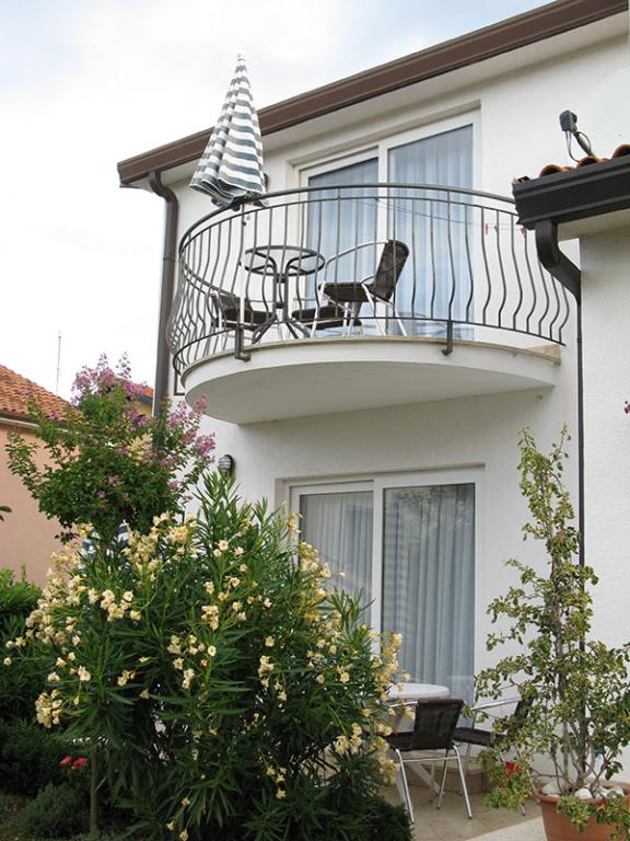 Kako bismo osigurali veću udobnost, iznajmljujemo apartmane isključivo za maksimalno dvije osobe. Kuća s dva apartmana nalazi se u mirnom dijelu Novigrada. Pristup naselju vrlo je jednostavan, udaljenost od glavne ceste upravo je tolika da se ne osjeća utjecaj prometa. Ulicama naselja služe se samo mještani i gosti, prometa gotovo nema. Pred kućom ima dovoljno mjesta za parkiranje. Dva apartmana u kući osiguravaju visoki standard odmora te obilje mira i srdačnije odnose. Uzdržavani su tijekom cijele godine. Svaki apartman ima 40m² i zaseban ulaz. Apartman u prizemlju ima vlastitu terasu, a onaj na katu ima balkon. Apartman je namijenjen za boravak dvije osobe. Ima odvojenu spavaću sobu sa bračnim krevetom. Kuhinja je potpuno opremljena. Apartmani su klimatizirani. Apartmani imaju centralno grijanje, stoga su pogodni za ljubitelje biciklizma tijekom cijele godine. Kućni ljubimci nisu dopušteni.
