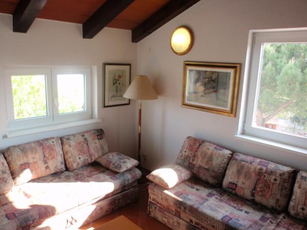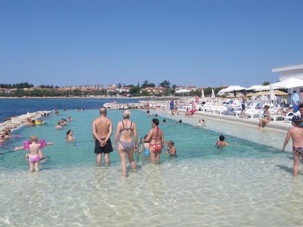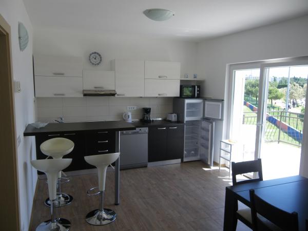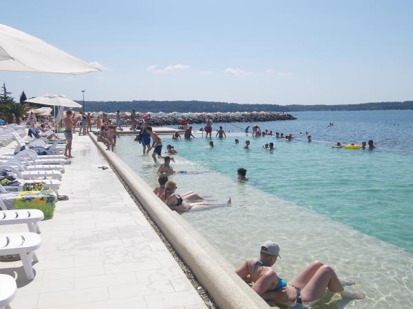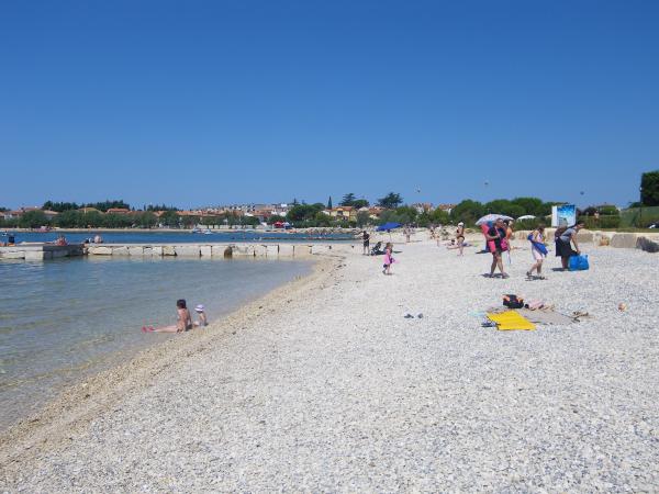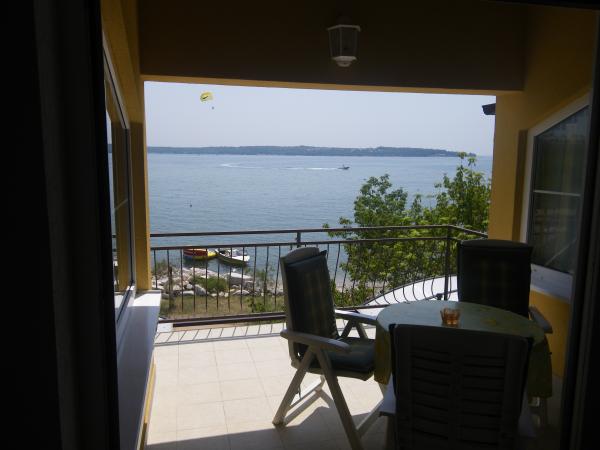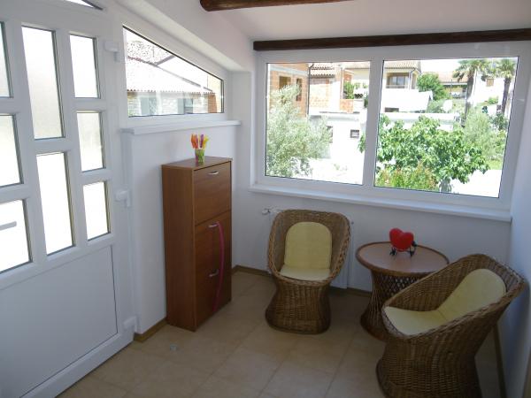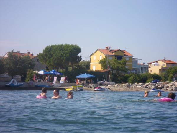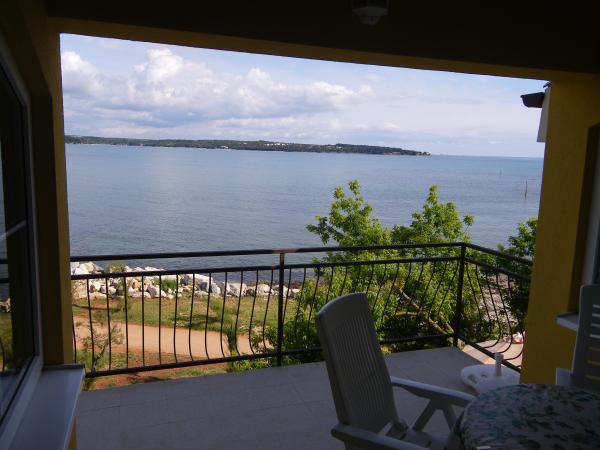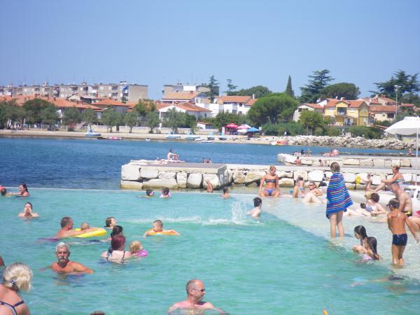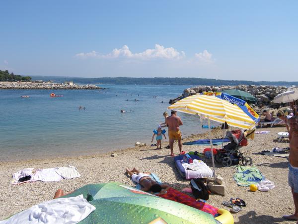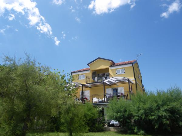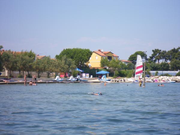 Apartmani su smješteni u obiteljskoj kući okruženoj zelenilom i parkom direktno na plaži. Objekt se nalazi u mirnom dijelu grada, u blizini centra grada, restorana i dučana. Ispred objekta nalaze se šljunčane i betonske plaže a u neposrednoj blizini se nalazi i besplatni bazeni za djecu i odrasle. Parking za vozila i bicikle je osiguran u dvorištu. Sportsko-rekreacioni centar, dječje igralište, najam kanua, čamaca i bicikala na raspolaganju su cijeli dan uz naplatu. Poznati acqua park Istralandia udaljen je samo 5 km. Apartmani su kompletno opremljeni i idealni za odmor obitelji s djecom ili grupu prijatelja.