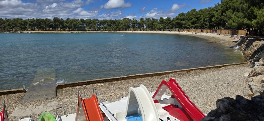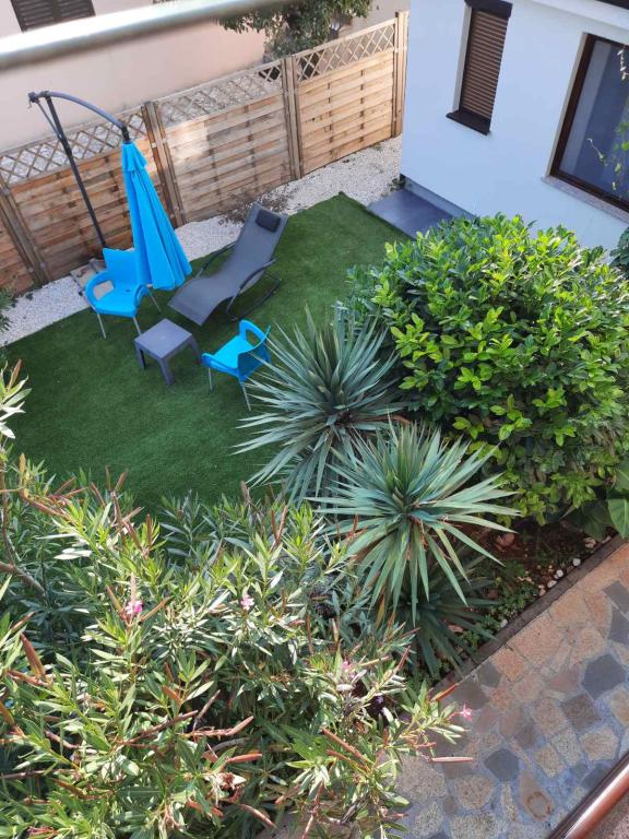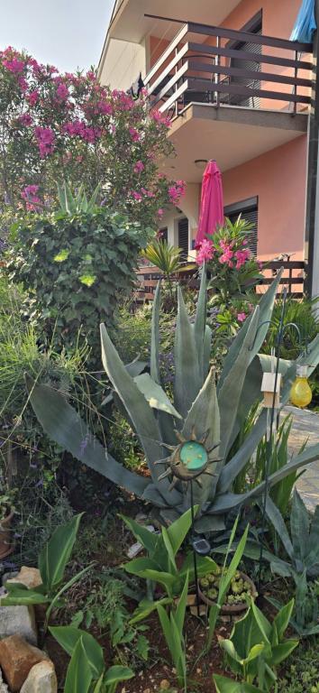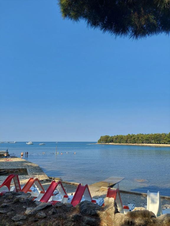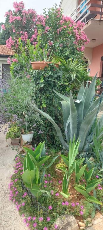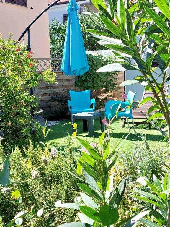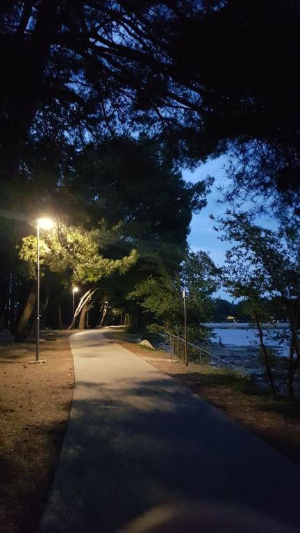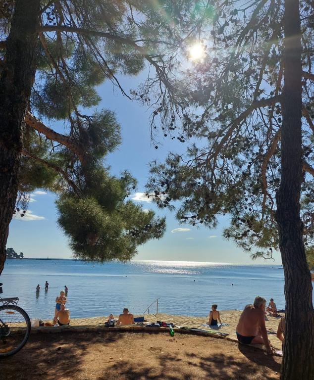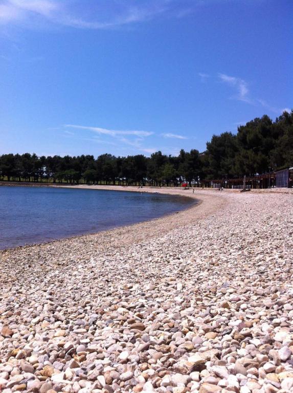 Smještena u neposrednoj blizini plaže, kuća Marina je naslonjena na borovu šumu, te slikovitu dugu šetnicu sa pogledom na beskrajno plavetnilo mora. Ona vodi u jednom smjeru ka mirnim plažama i skrivenim uvalama a u drugom kroz Marinu do samog centra grada. Uz šetnicu se nalaze restorani, cafei, dječiji park, sportska igrališta, teniski tereni, teren za mini golf, teretana na otvorenom i eco plaza sa zelenom zastavom. Čitavom ambijentu ugodaj i posebnu atmosferu daju miris borova, mora i soli. Kuća Marina je savršeno mjesto za miran odmor ali i za aktivni boravak u prirodi po želji. Unutrašnjost kuce je uređena tako da ukomponira klasiku i moderan stil. Poanta je na maksimalnoj udobnosti spavaće sobe i ostalih prostora. Apartmani su komotni i opremljeni suvremenim uređajima. Svaki apartman ima prostranu terasu na kojoj se gosti mogu relaksirati. U dvorištu kuće nalazi se grill prostor i parking. Do plaže je potrebno minut hoda a do centra grada 10 minuta, šetnicom uz more.