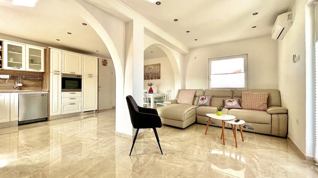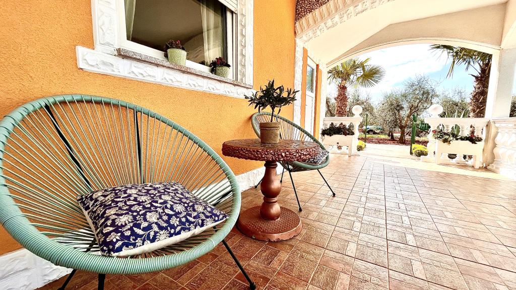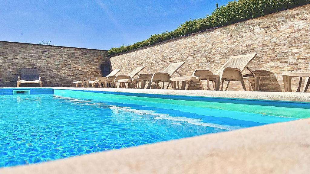 4 apartmana za iznajmljivanje u blizini Novigrada. Udaljenost od plaže i centra 1800m. Apartmani su novi, okružena vinogradima i prirodom. Pred kućom je bazen.