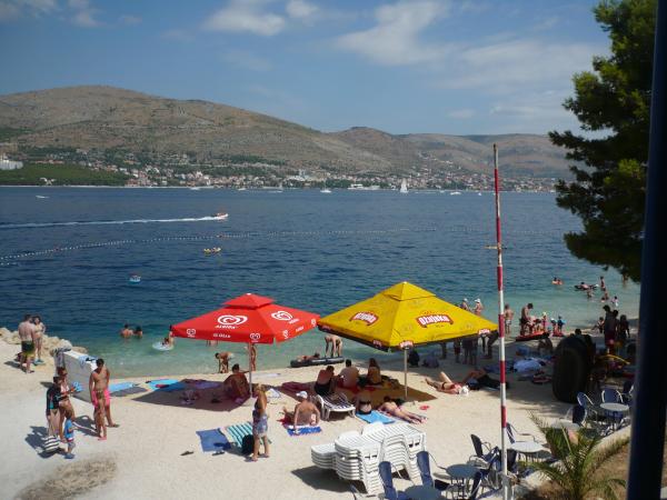 Izvrsno opremljen (sve uključeno u cijenu, kao i boravišna pristojba), prostrani, Apartman Gizella, u prizemlju obiteljske kuće, sa terasom, dvorištem i parkingom, svojim položajem nudi miran, opuštajući obiteljski odmor u sjeni stabala naranči, limuna, mandarina i prekrasne borove šume, koja se nadvila nad kristalno čistim morem, uz mogućnost šetnji i bicikliranja pored maslinika i mediteranskog ljekovitog bilja. Jedini ste gosti u objektu i imate poseban ulaz. Šljunčane, stjenovite i betonske plaže, sa parkingom, prodavnica, kafići, restoran, fast food, dječje i sportsko igralište, autobus i bankomat su na pet- šest minuta hoda. U isto vrijeme, na samo 8 km, mostovima povezan drevni grad Trogir, pod zaštitom UNESCO-a, blizina nacionalnog parka Krka, otoka Šolte i Brača, nude dinamične izlete i provod. Blizina aerodroma olakšava vam dolazak i moguć je dogovor za transfer. Mjesto je malo, mirno i prelijepo. Ljubazno vas očekujemo uz piće dobrodošlice