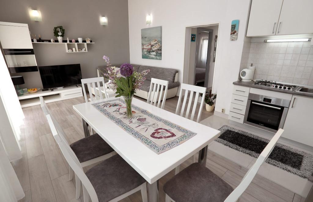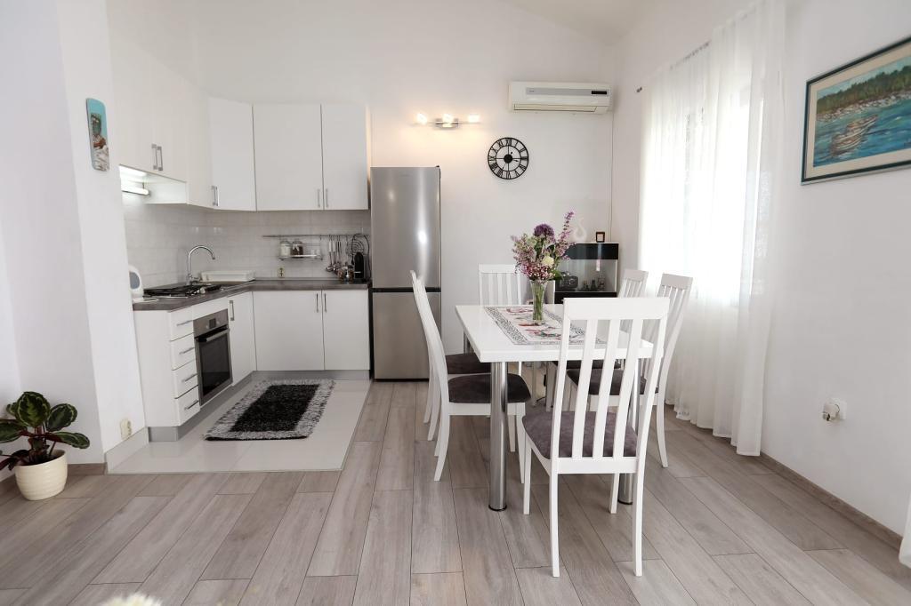 Apartman Katija smješten je u Okrugu Gornjem, samo 30 m od morske obale. Naš apartman nudi savršen spoj mira, udobnosti i očaravajući pogled na brojne dalmatinske otoke. Idealna je destinacija za obitelji, parove i sve koji traže opuštanje u prirodnom okruženju, daleko od gužve, a ipak blizu svih potrebnih sadržaja. Uživajte u jutarnjoj kavi ili večernjem zalasku sunca na privatnoj terasi, gdje vas očekuje pogled koji oduzima dah. Na samo 5 minuta hoda nalaži se i uređena plaža plaža pogodna za djecu, sa plićakom i prirodnim hladom- idealna za obiteljski odmor. Glavne značajke apartmana: blizina mora, terasa sa prekrasnim pogledom, potpuno opremljena kuhinja sa blagovaonicom i dnevnim boravkom, dvije sobe sa bračnim krevetima, kupaonica sa tušem i osnovnim potrepštinama, besplatan Wi-Fi, klima uređaj, TV, besplatni parking. Bilo da planirate aktivan odmor ili jednostavno želite uživati u suncu i moru, naš apartman u okrugu Gornjem nudi sve što vam treba za nezaboravan boravak.