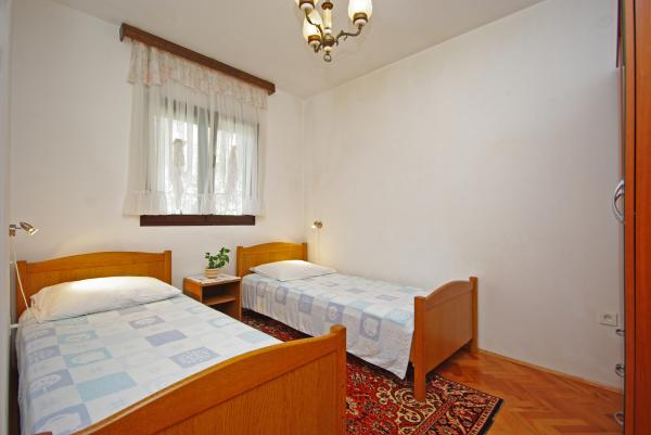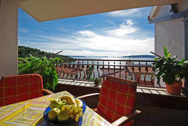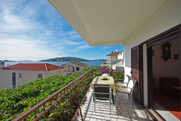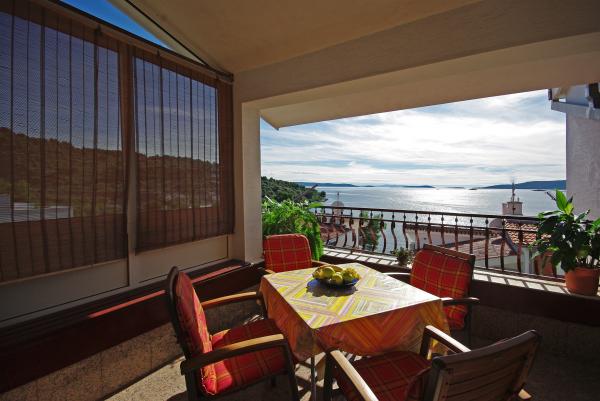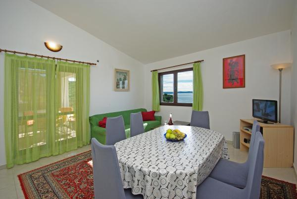 Privatna kuća smještena na jugozapadnom dijelu otoka Čiova u mirnom području. Udaljena od najbliže plaže 50 m. Šljunčana plaža pogodna za malu djecu udaljena 300 m. Apartmani su moderno opremljeni, uključujući i klima uređaje, perilice rublja te besplatan Wi-Fi. Oba apartmana posjeduju prostrane balkone s odličnim pogledom. Najbliža trgovina i restoran udaljeni 5 minuta automobilom