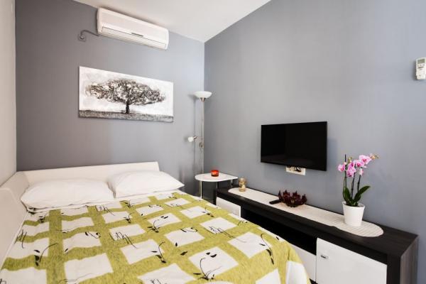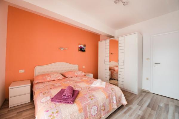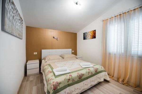 Predivan pogled, uredan apartman sa svim potrebnim sadržajima, ljubazni domaćini uvijek na usluzi. Do mora je pet minuta pješke, a jedina zamjerka je što nema hlada na plaži, ali postoji druga plaža malo dalje koja ima dovoljno hlada. U periodu kad smo mi bili izrazito je mirno i stvarno smo bili na pravom odmoru, daleko od buke i stresa.