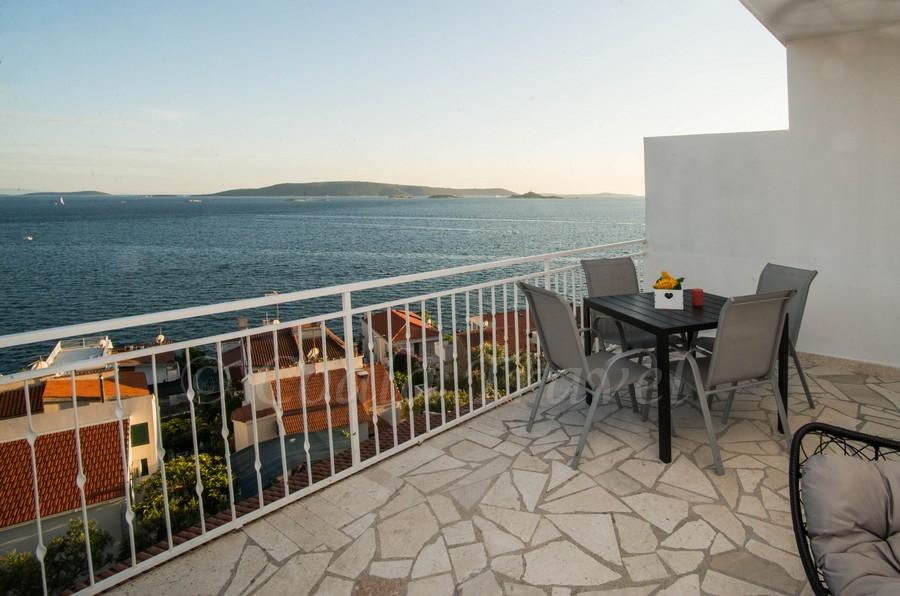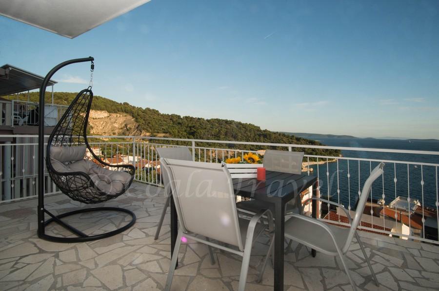 Apartmanska kuca Kristi nalazi se u tihom okruzenju u mjestu Okrug Donji, sa prekrasnim pogledom na more i otocice.5 apartmana i jedan izdvojen kao zasebna kućica . Svaki apartman Ima parkirno mjesto u garazi za svaki autobomil. Boravak psa se naknadno naplacuje 10 € za noć Nema povrata depozita za rezervacije otkazane 40 dana ili manje od dana dolaska. Boravak psa 10 € uz najavu