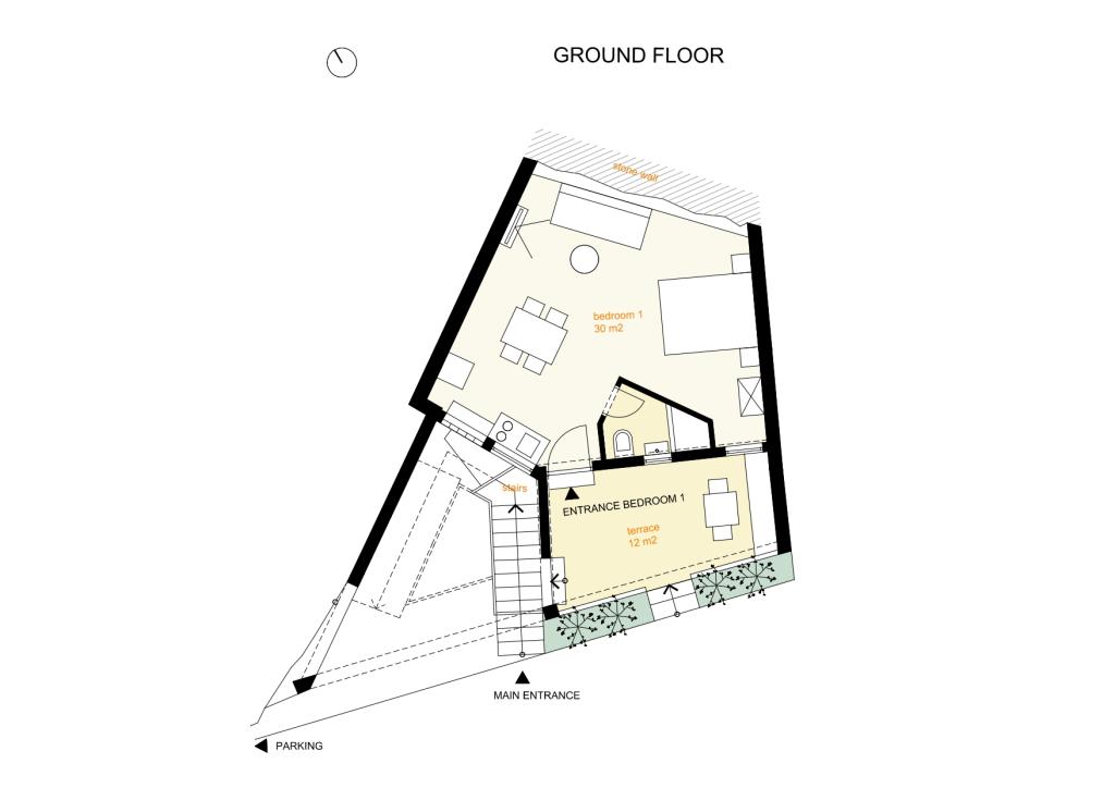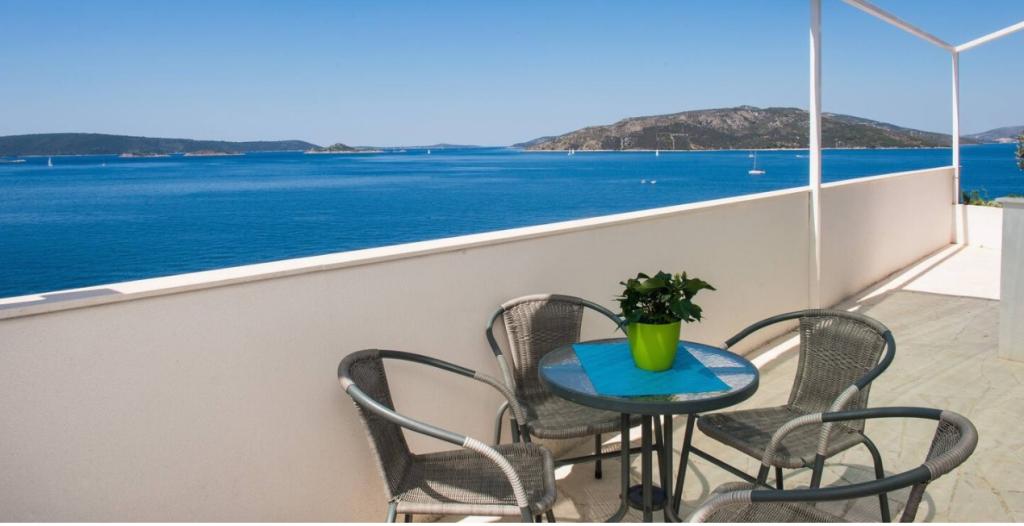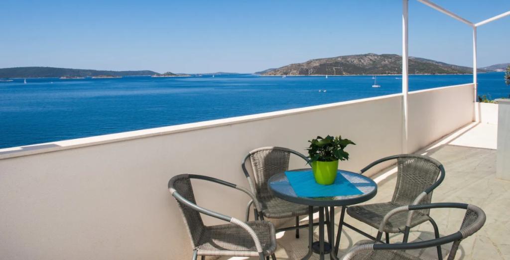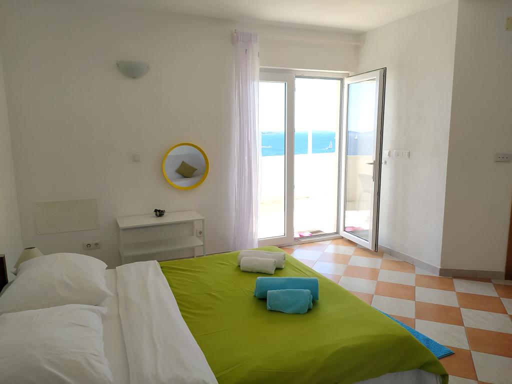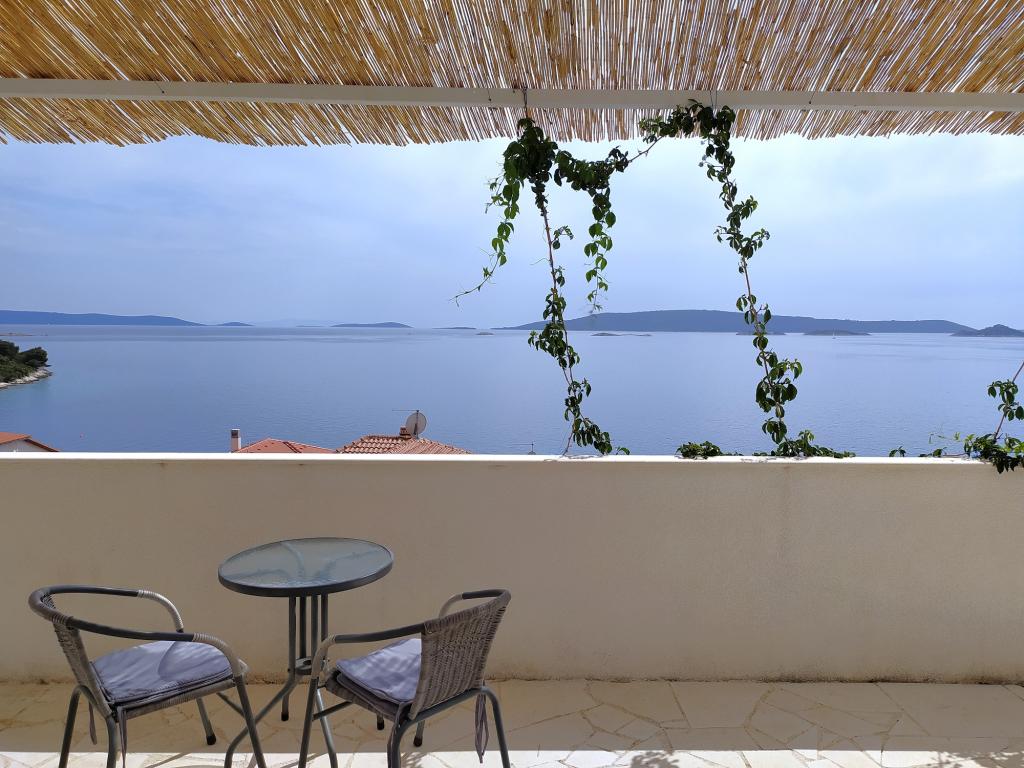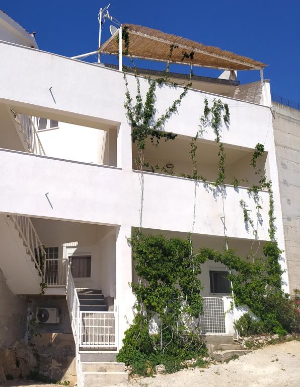 Opustite se u ovoj jedinstvenoj kući s prekrasnim pogledom na više od deset otoka. Nalazi se na mirnom mjestu s vrlo čistom plažom u blizini od 70 m. Ova trokatnica ima jednu spavaću sobu u prizemlju i jednu spavaću sobu na 1. katu. Dnevni boravak je na 2. katu. Svaka etaža je povezana vanjskim stubištem. Spavaće sobe imaju unutarnji zid od pravog kamena koji osigurava blagu klimu tijekom ljeta. Imaju vlastitu kupaonicu, kuhinju sa stolom za blagovanje, bračni krevet, sofu i privatnu terasu. Svaka spavaća soba može primiti 3 osobe (2 na jednom krevetu i 1 na sofi). Spavaća soba u prizemlju se nalazi u blizini ceste, ali na terasi se nalazi zeleni zid od biljaka koji pruža privatnost. Spavaća soba na 1. katu ima terasu s pogledom na more. Dnevni boravak s glavnom kuhinjom, stolom za blagovanje i kupaonicom nalazi se na 2. katu. Ima sofu i jedan bračni krevet koji se može koristiti za dodatno spavanje. Ispred dnevnog boravka nalazi se terasa s prekrasnim pogledom na more.