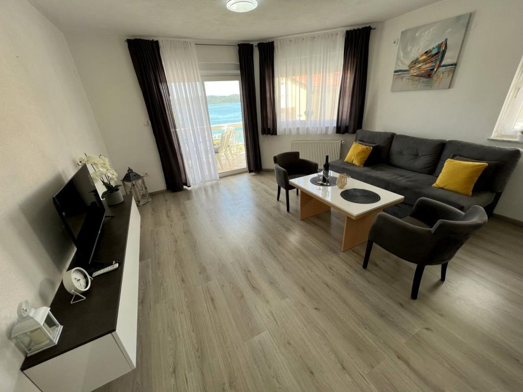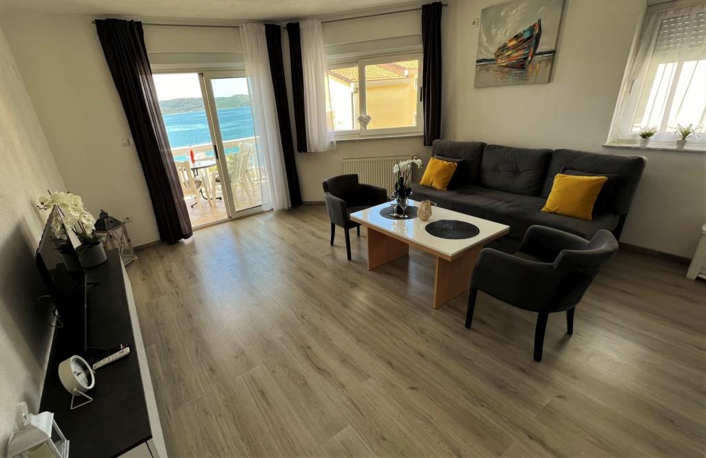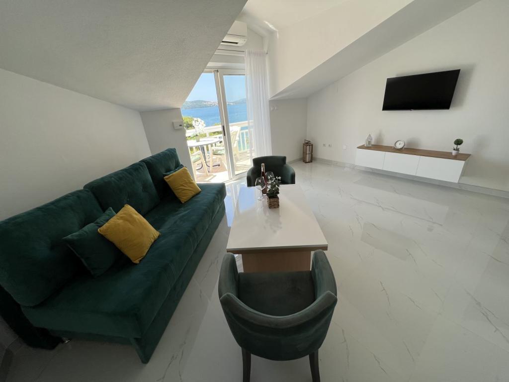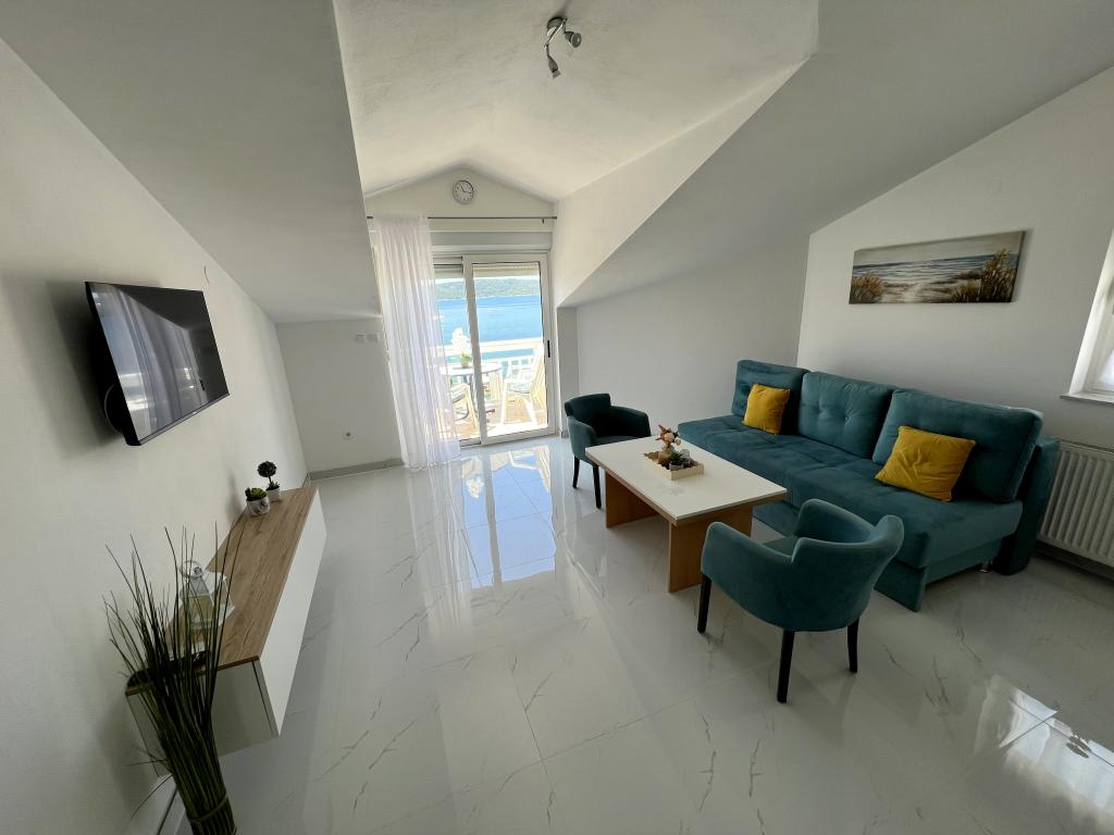 Odličan apartman, dva balkona s pogledom na more i dobro opremljen. Klima uređaj, Smart TV i udobni kreveti. Sjajni i uslužni vlasnici. Parking na posjedu. 1 minuta do intimne plaže. Trgovina u neposrednoj blizini. Preporuči!