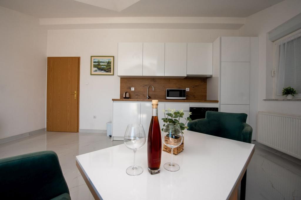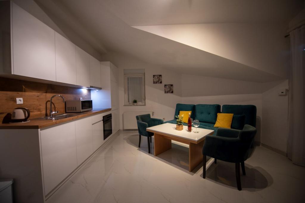 Pročitaj više Smještajne jediniceUkoliko ste zainteresirani za boravak u našim apartmanima, slobodno nam se javite putem e-maila. Rado ćemo vam poslati detaljnu ponudu i sve potrebne informacije vezane uz termin, cijenu i dostupnost. Putem e-maila također možete napraviti rezervaciju apartmana. Nakon potvrde rezervacije, potrebno je uplatiti akontaciju (kaparu) na naš bankovni račun, dok se preostali iznos plaća u gotovini prilikom dolaska. Idealno vrijeme dolaska u apartman je od 14:00 sati nadalje, najkasnije do 23:00 sata, ali naravno, moguć je i dogovor o drugačijem vremenu dolaska ako je potrebno. Vrijeme odlaska na dan check-outa je između 7:00 i 10:00 sati ujutro, kako bismo imali dovoljno vremena pripremiti apartman za sljedeće goste. Trudimo se svakom gostu omogućiti što ugodniji i jednostavniji dolazak i odlazak, uz fleksibilnost kad god je to moguće. Veselimo se vašem dolasku i nadamo se da ćete kod nas provesti opuštajući i nezaboravan odmor!