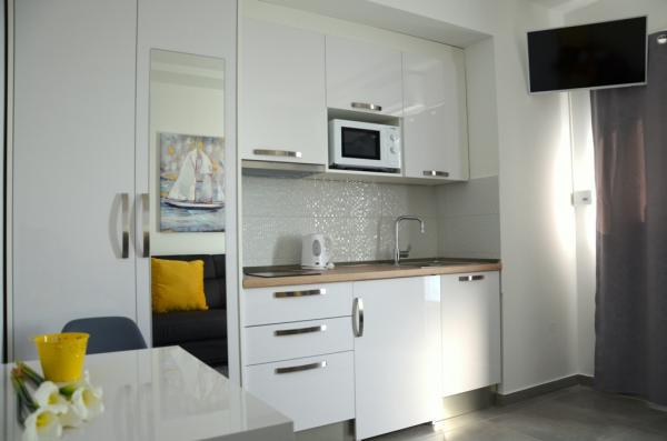 Studio apartman je savršene veličine za par. Čisto i tiho. Kuhinja je bila moderna i imala je pristojnu količinu uređaja i svega ostalog što će vam možda trebati u kuhinji. Prečac do središta grada. Blizu male plaže. S balkona smo imali prekrasan pogled na more. Ljubazni domaćini!