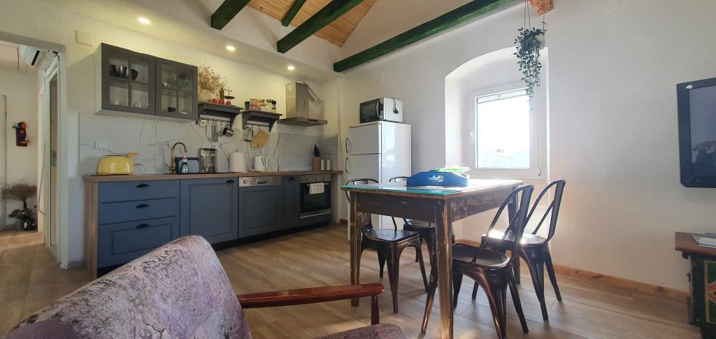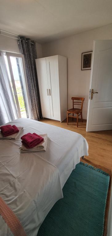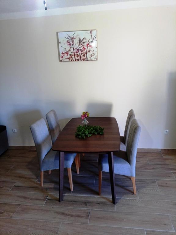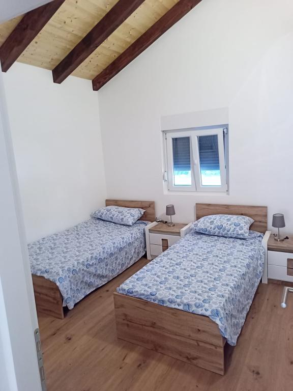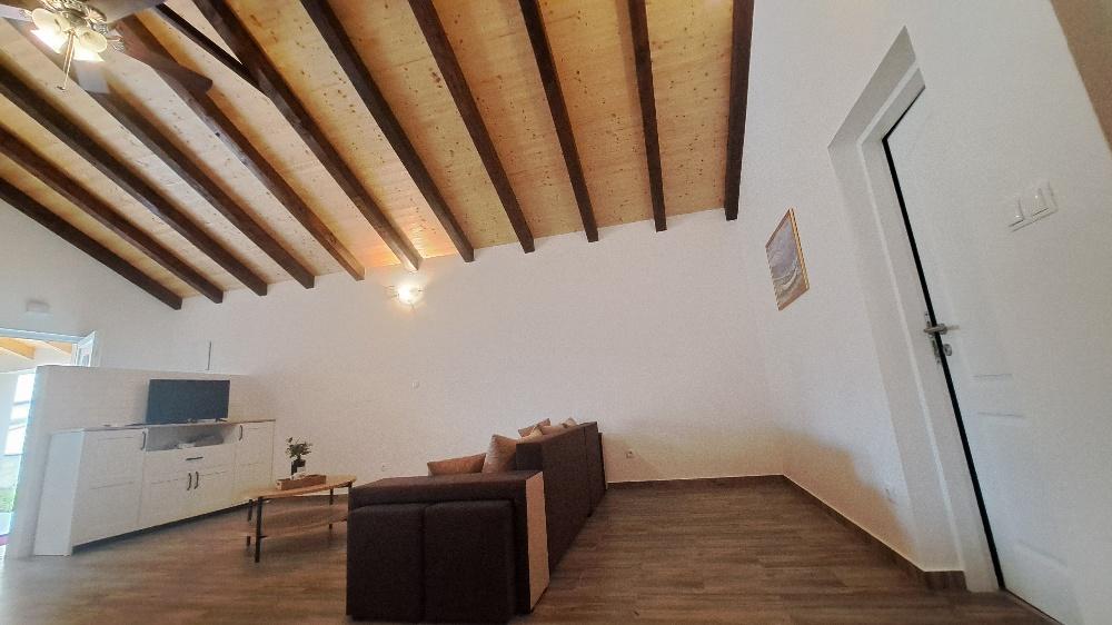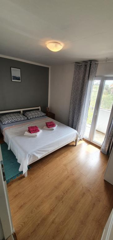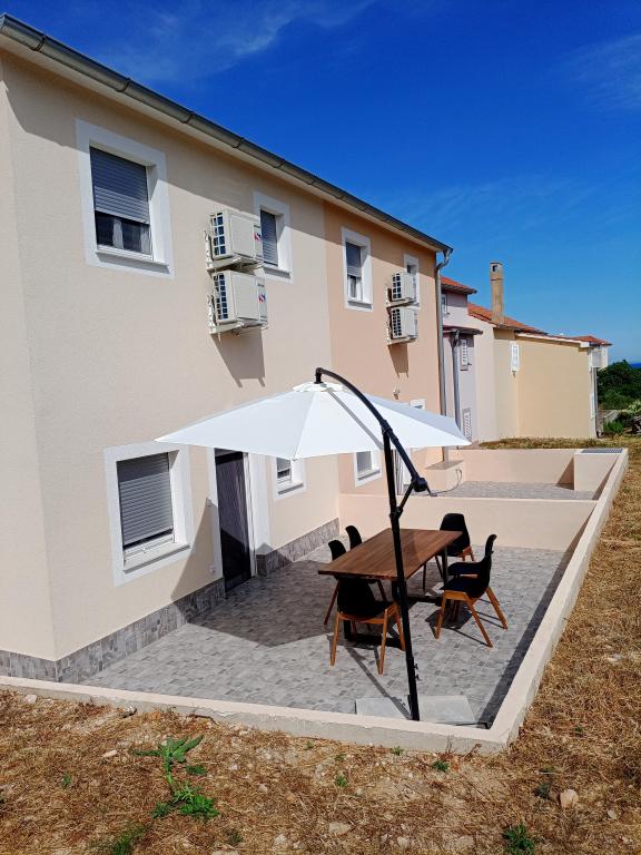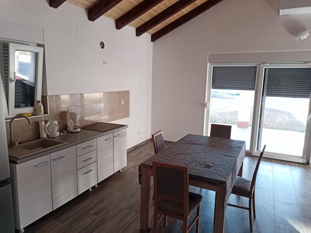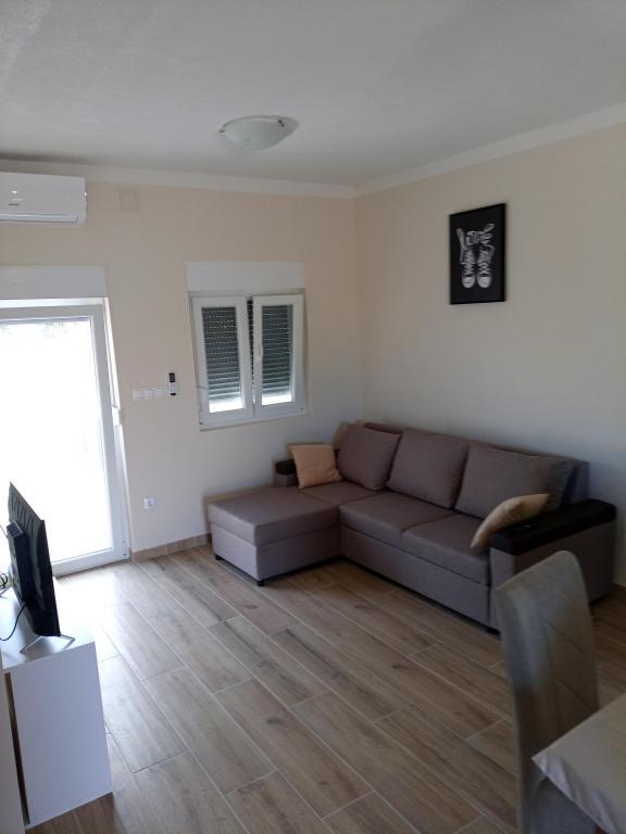Apartman sa pogledom na more. Ima dvije terase. Koristenje rostilja. Klime u svakoj sobi Klime u prizemlju Od centra i mora udaljen hoda 10 min. Apartman se nalazi na rubnom djelu mjesta i smješten je daleko od buke . Auto se može parkirati na parceli u vlasništvu objekta. Apartman je napraviti i uređen 2020.g.