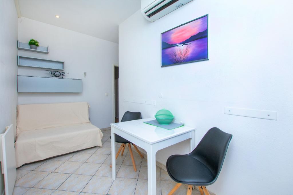 Apartman ''Piccolo'' se nalazi na 5-10 min. hoda do starog dijela grada Omiša, te na oko 5-7 min. hoda do plaže (Velika plaža). Površine je 25 m² a sastoji se od dnevnog boravka s blagovaonicom i malom kuhinjom, odvojene spavaće sobe i kupaonice s tuš kabinom i perilicom rublja. U dobro opremljenoj kuhinji gosti će pronaći mikrovalnu, hladnjak, ploču za kuhanje, aparat za kavu, kuhalo i posuđe. Apartman je dijelom renoviran 2024.g., klimatiziran je i ima prostor za sjedenje s TV-om. Nalazi se u stambenoj zgradi, visoko prizemlje - zasebni ulaz preko stepeništa na jugu zgrade. Za goste je osiguran besplatan parking, wi-fi (uključeno u cijenu). Vrste ležaja: 1 bračni krevet i kauč na rasklapanje. Broj osoba: 2.