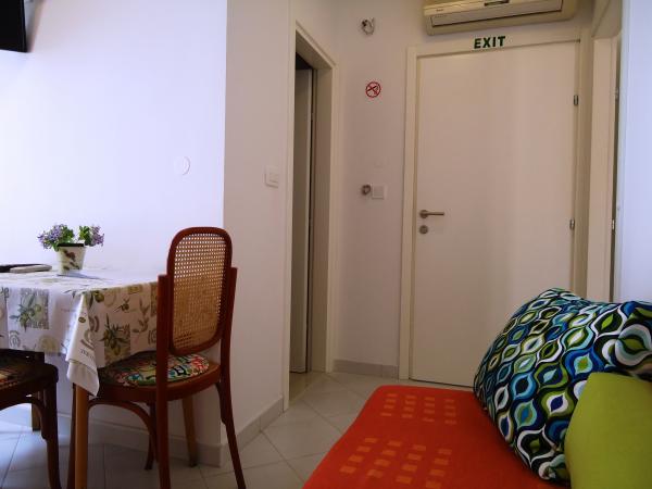 Pročitaj više Smještajne jedinicePrilikom rezervacije potrebno je uplatiti 30% akontacije na račun, od ukupnog iznosa cijene boravka. Ostatak se plaća po dolasku u apartman. Dolazak iza 15:30 h, odlazak do 10:00 h, kako bi se apartman mogao pravovremeno očistiti i pripremiti za idućeg gosta. U slučaju da je apartman spreman za novog gosta, moguc je i raniji dolazak, kasniji odlazak. Jedno parkirno mjesto po apartmanu ne naplaćuje se. Dječiji pomoćni krevetić naplaćuje se 10 eura po noćenju. Upotreba perilice za rublje naplaćuje se 30 eura po boravku. Osiguravamo deterdzent za perilicu rublja. Na cijenu noćenja obračunava se usluga čišćenje apartmana 40 eura po boravku.