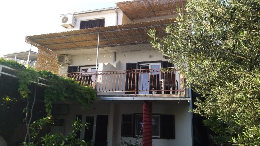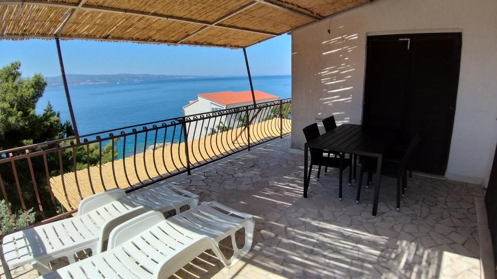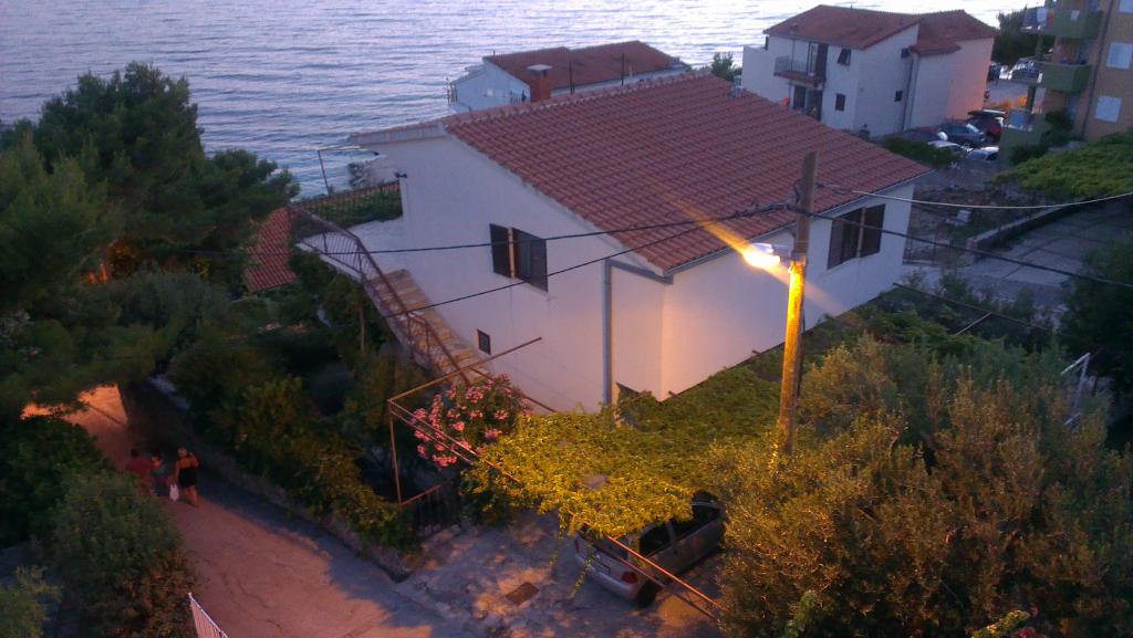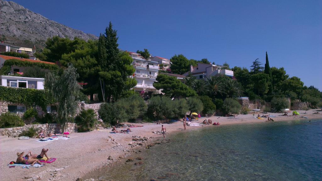 Dragi gosti! Imamo na raspolaganju 1 A4+2 apartman (68 m2 30 m2 terasa) i 2 A2+2 apartmana (32 m2 10 m2 terasa) za ukupno 12 osoba. Svi apartmani imaju terase sa stolom i sjedalicama i s pogledom na more. Kuća se nalazi 30 m od šljunčane plaže. Parking za 2 x 2 auta nalazi se odmah iza kuće. Roštilj za korištenje je također tu. Prekrasna šljunčana plaža je 30 m od kuće. Susjedstvo je mirno, a zalasci sunca su predivni. U blizini se nalaze 3 restorana, market, bankomat i pekara. Ribarnica i mesnice za svježu ribu i meso su u obližnjem Omišu. Za sva pitanja i savjete stojimo vam na usluzi od 1985.